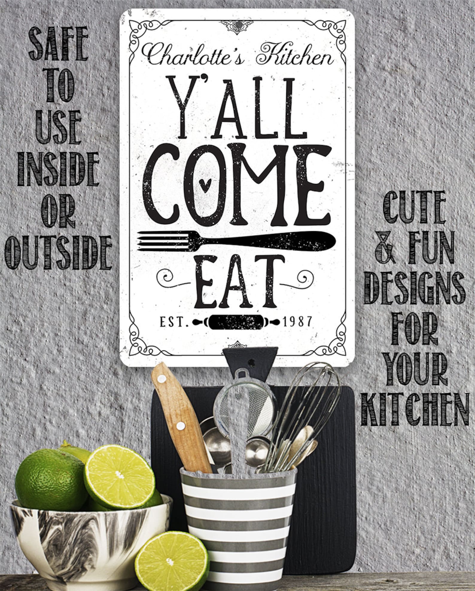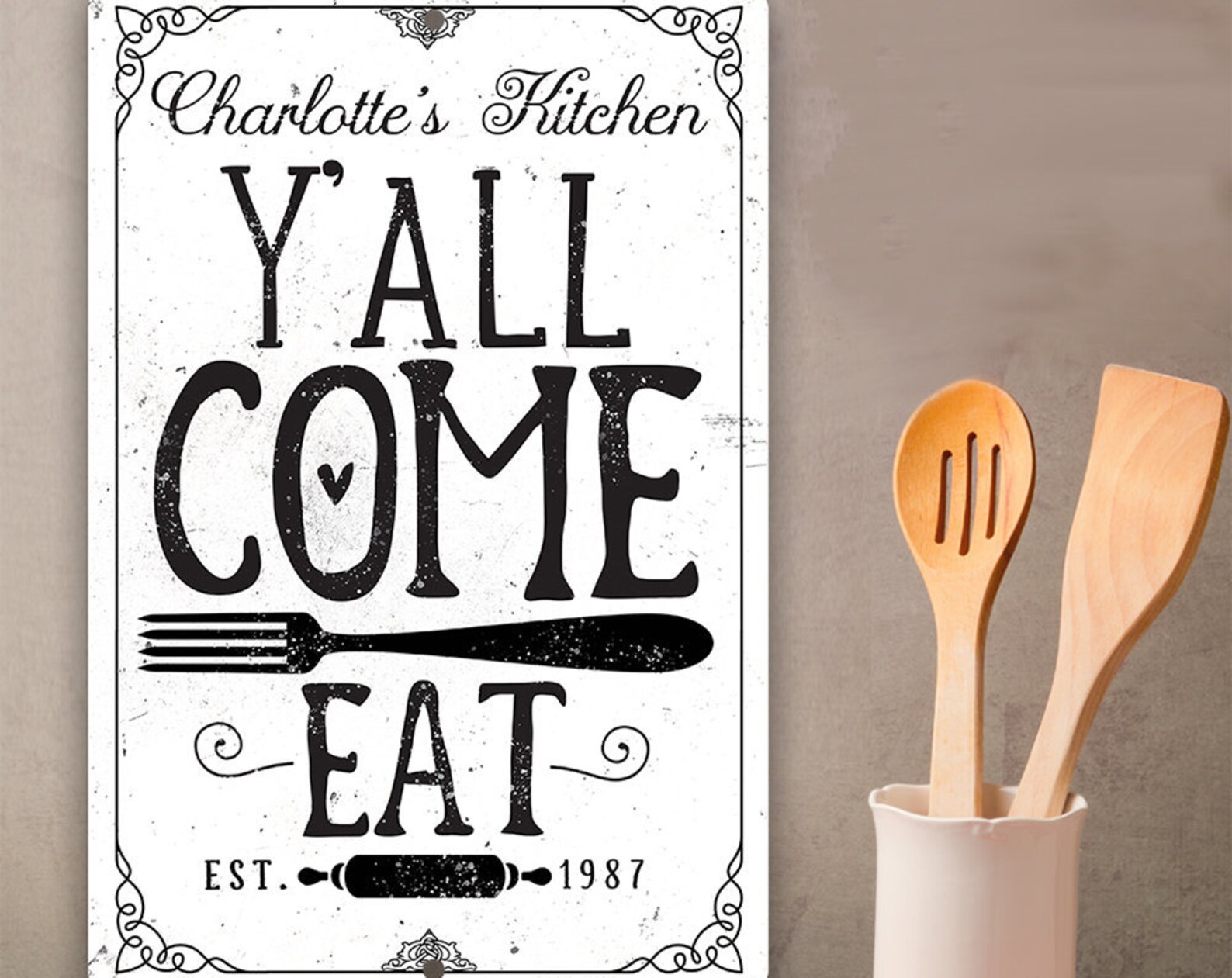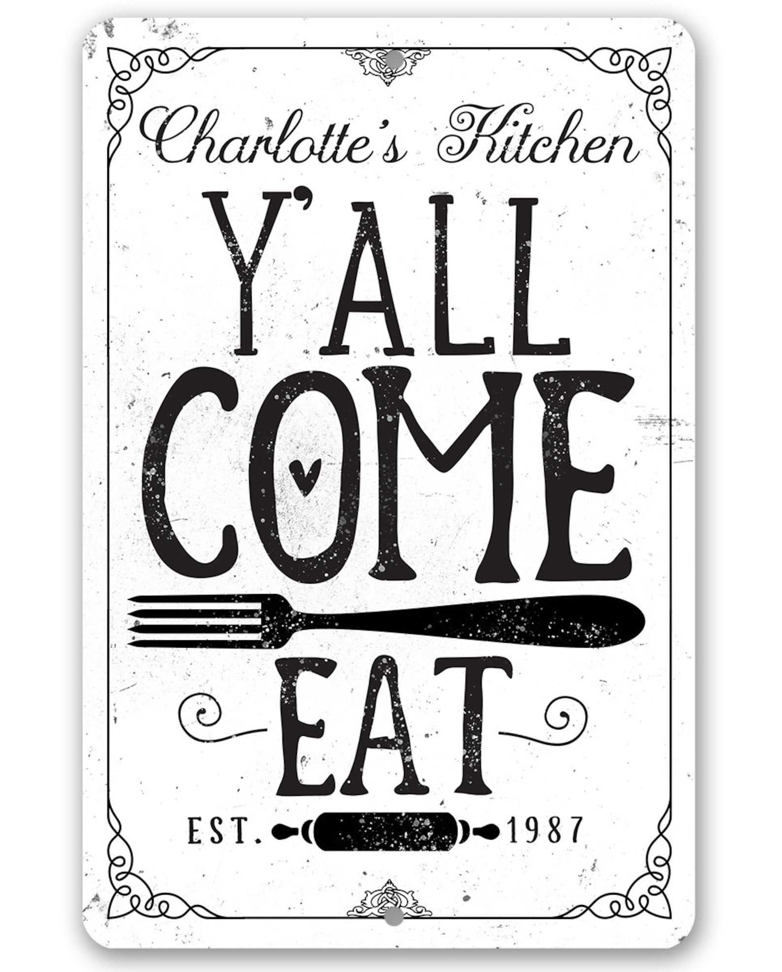 Personalized Y9;all Come Eat Kitchen – 8" x 12" or 12" x 18" Aluminum Tin Awesome Metal Poster