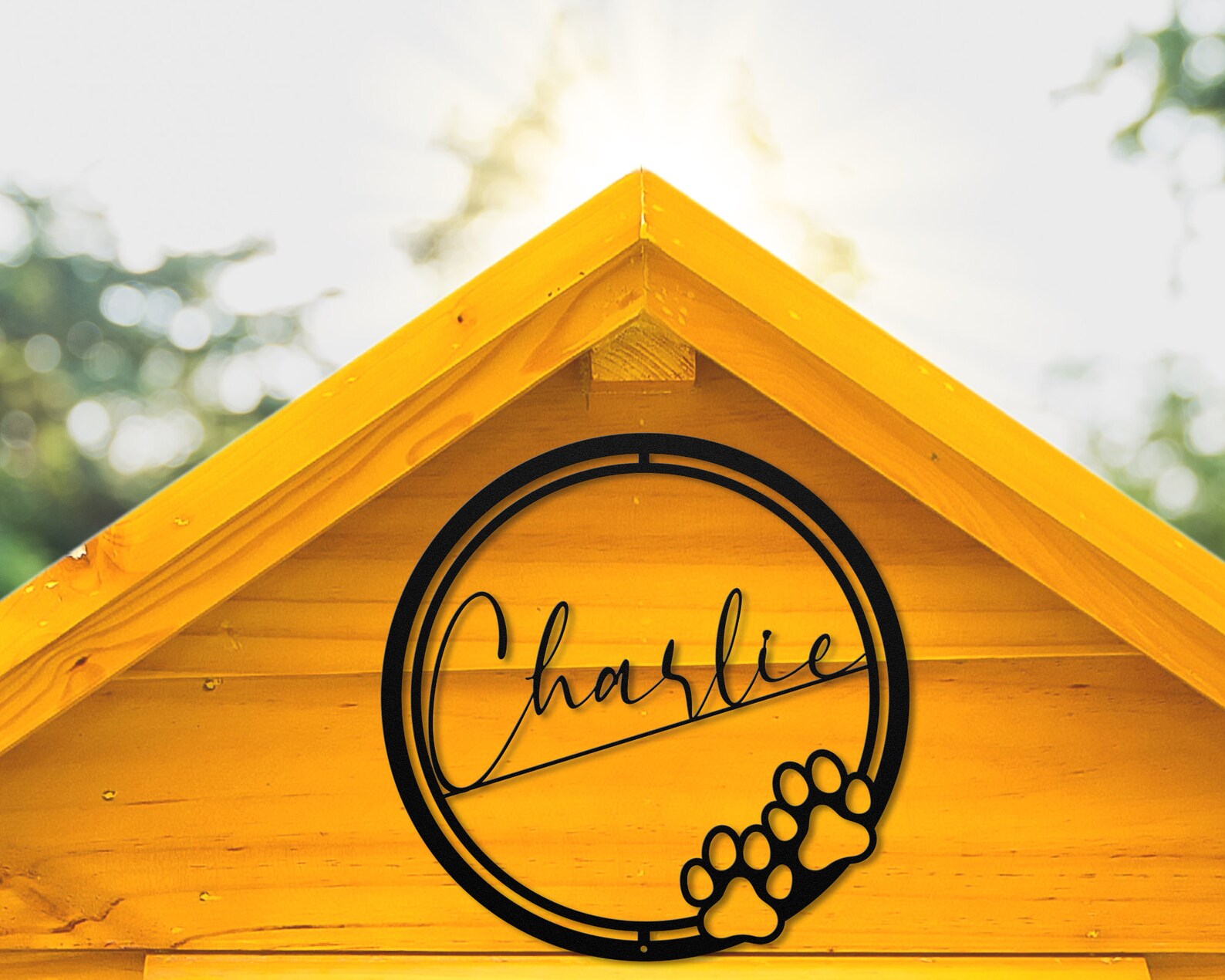 Enhance your home decor with the pet name sign. This metal plaque is made up with 18 gauge steel. It will give the touch of elegance to your wall by adding this steel sign inside, outside or any place of your choice!