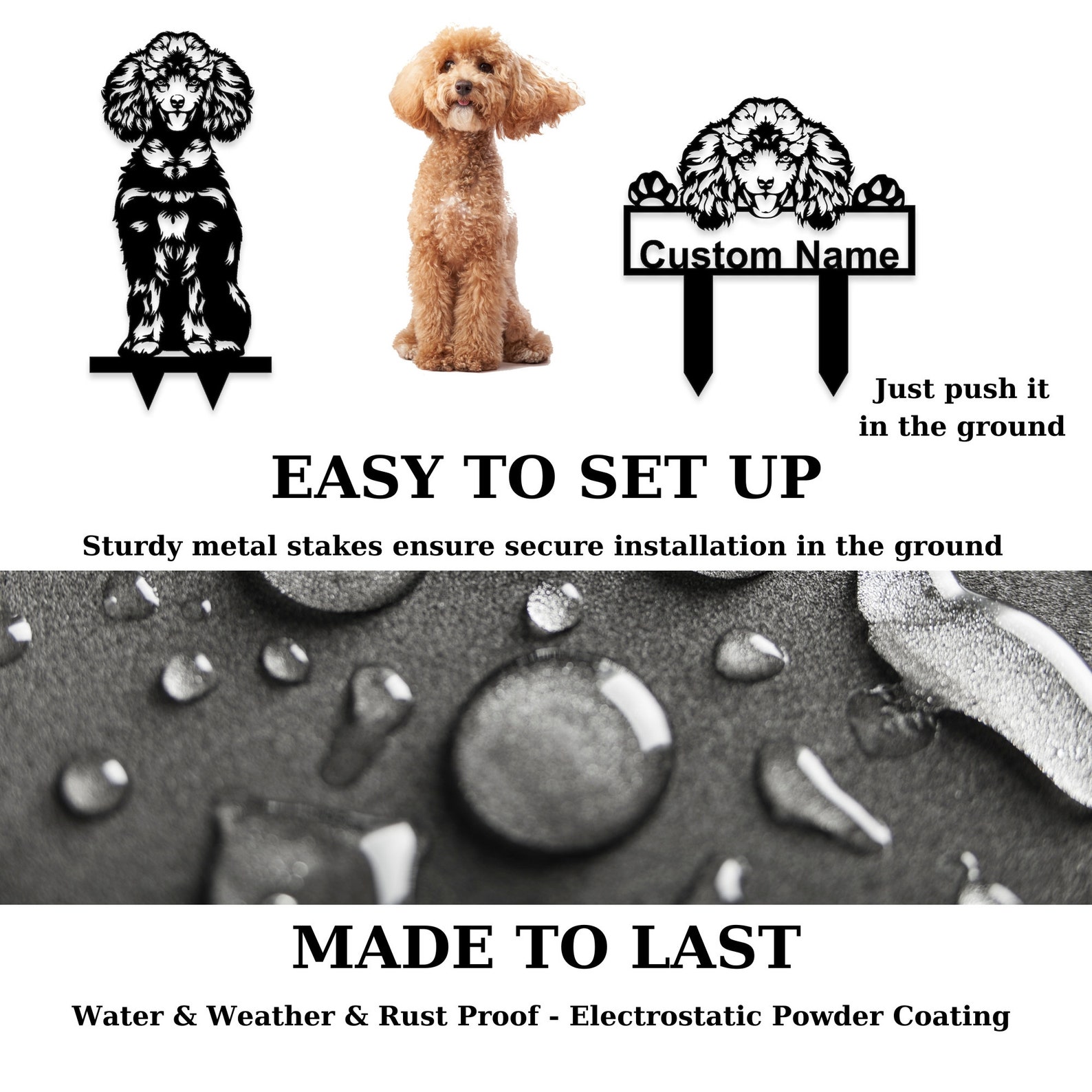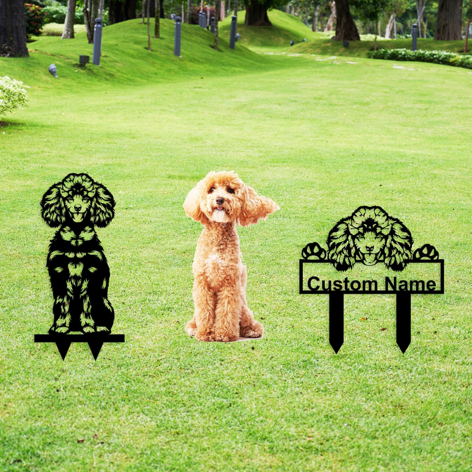 Cherish your poodle9;s memory with our custom metal garden decor. A heartfelt gift for dog lovers and a meaningful addition to your outdoor space. Create a lasting tribute with a personalized dog portrait and gravestone.