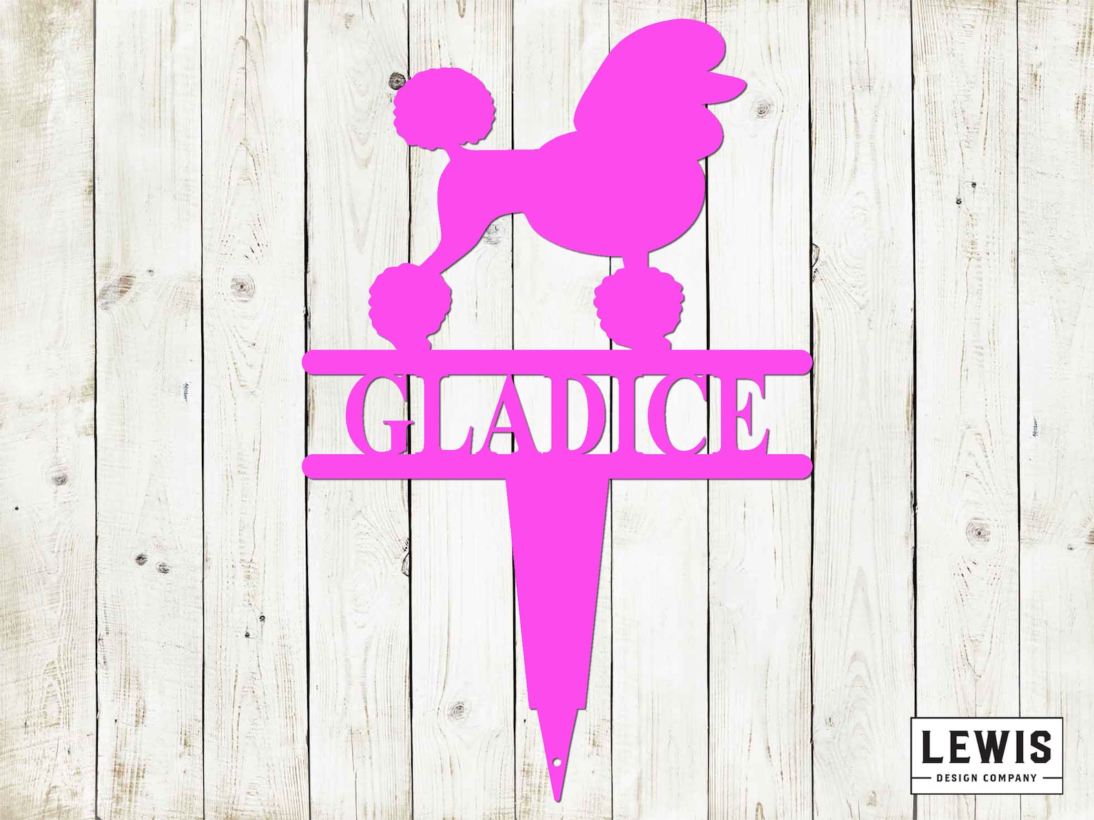 Show your love for your Poodle by staking this cute name sign by their house, in the garden or at their favorite spot.