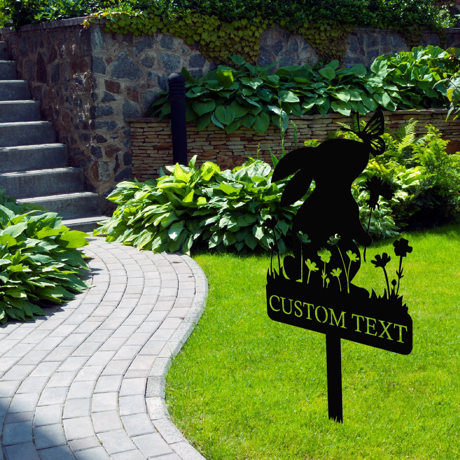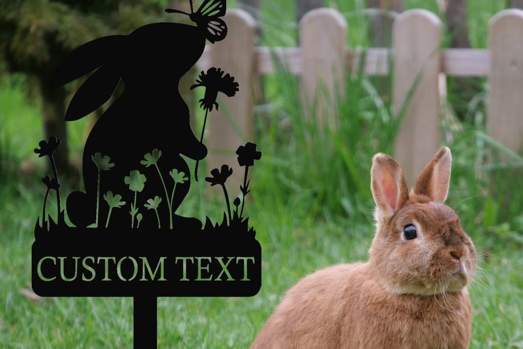 Metal Custom Name Rabbit Garden Stake, Bunny Garden Sign, Your Own Text Garden Decorations, Yard Decor Art, Gardener Gift, Mom9;s Garden Sign