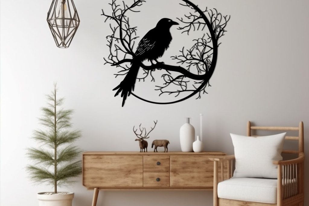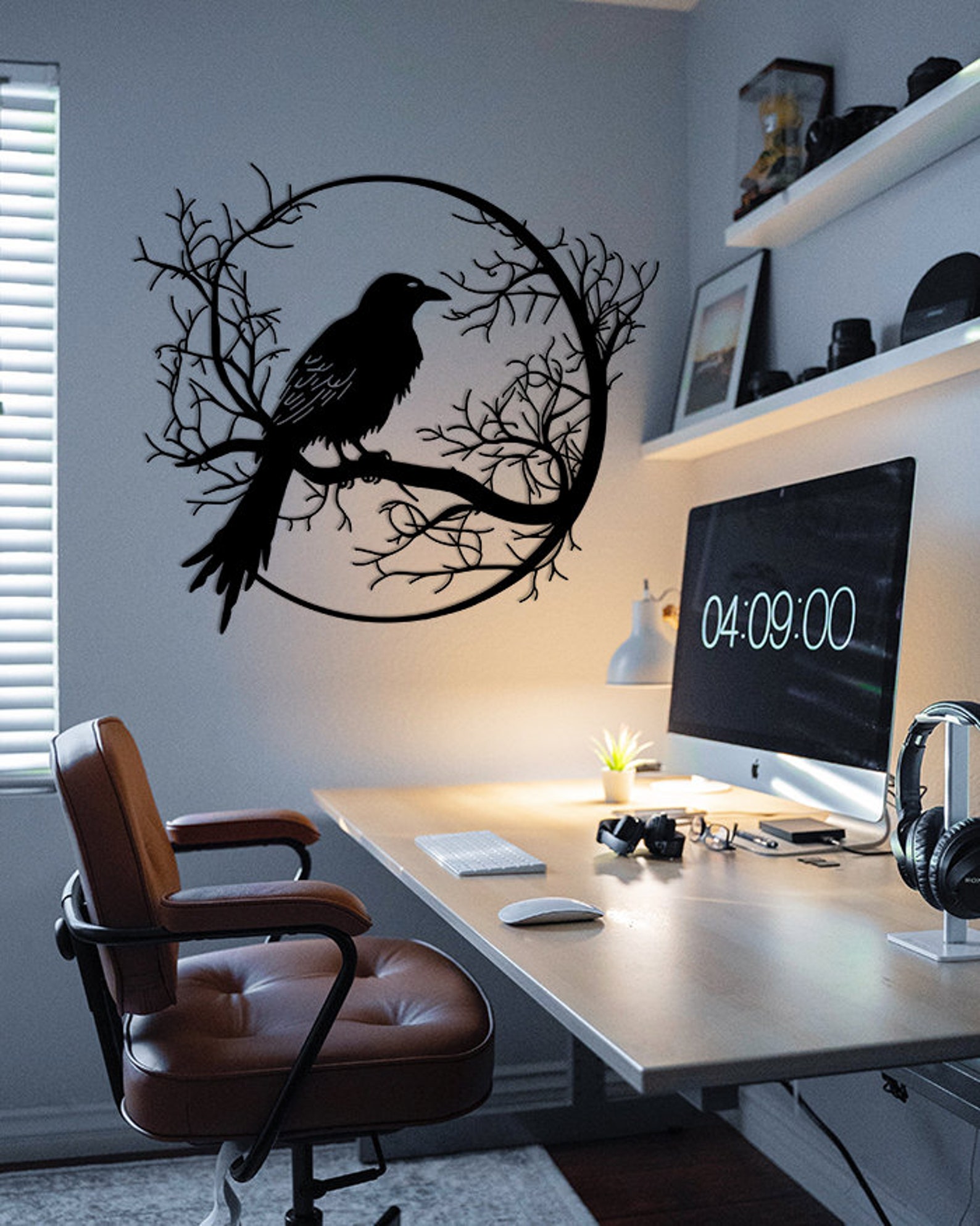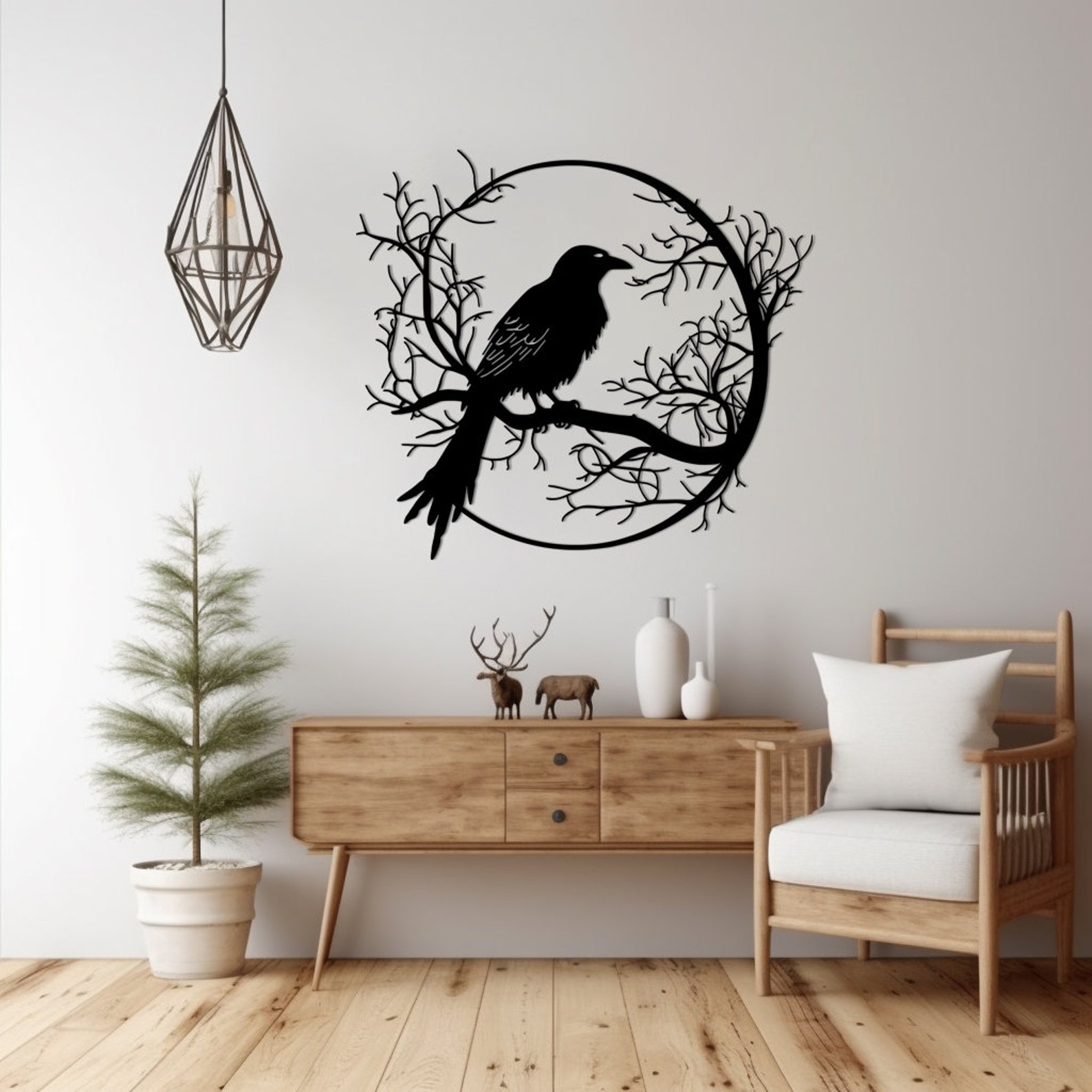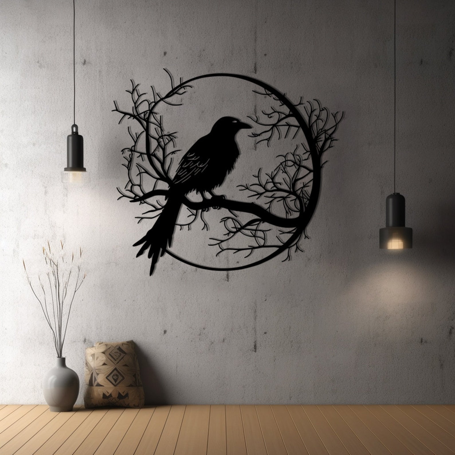 Be the first to review “Raven Crow on Branch Metal Wall Art – Animals Wall Art”