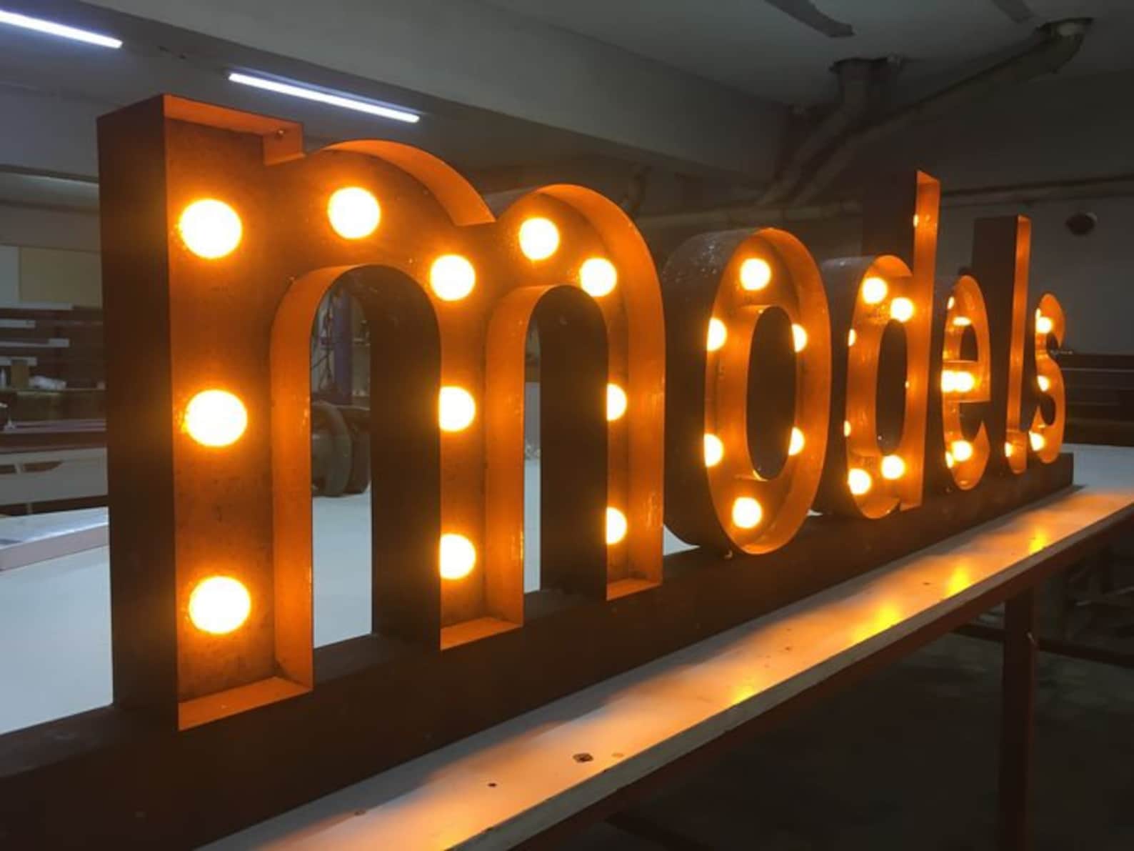 Retro Box Letter Signage with Light Bulb, Custom Marquee Signs, Business Illuminated Signs, LED Channel Letter, Rustic Metal Letter Lights