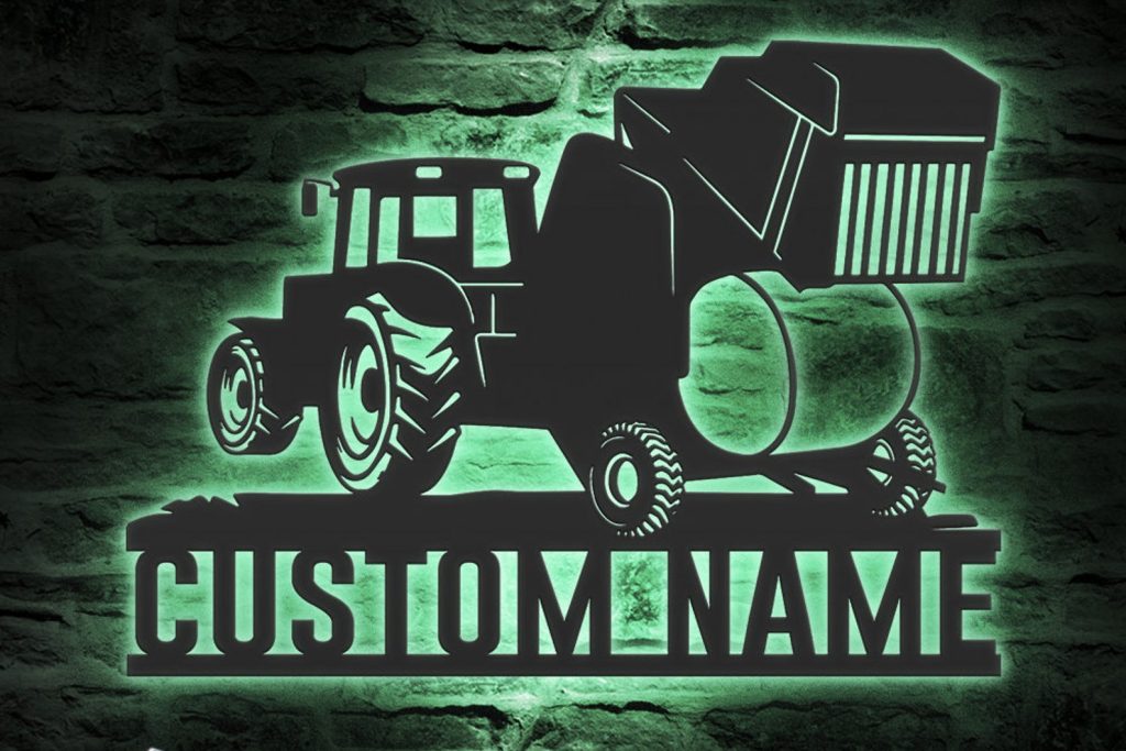 Round Baler Art – LED Personal Tractor Sign, Garage Decor