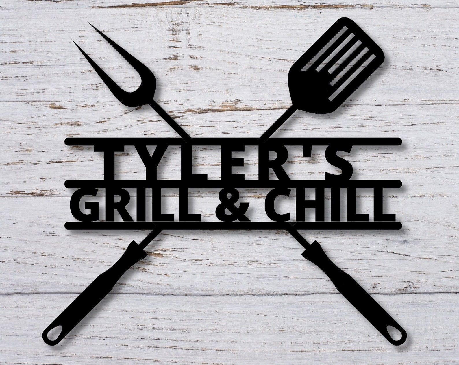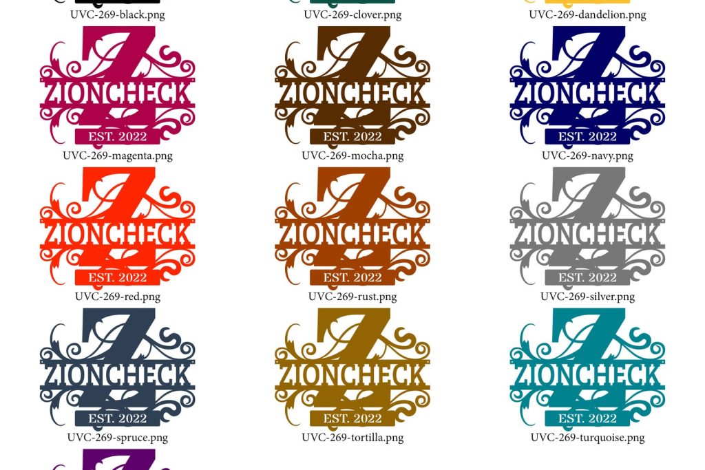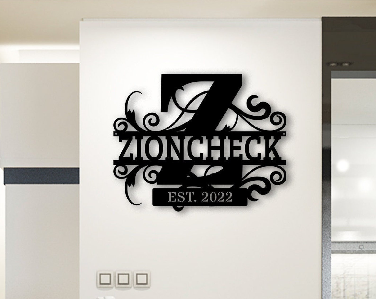 Round Ornate Split Initial Monogram Metal Sign – Space for Established Date and Last Name
