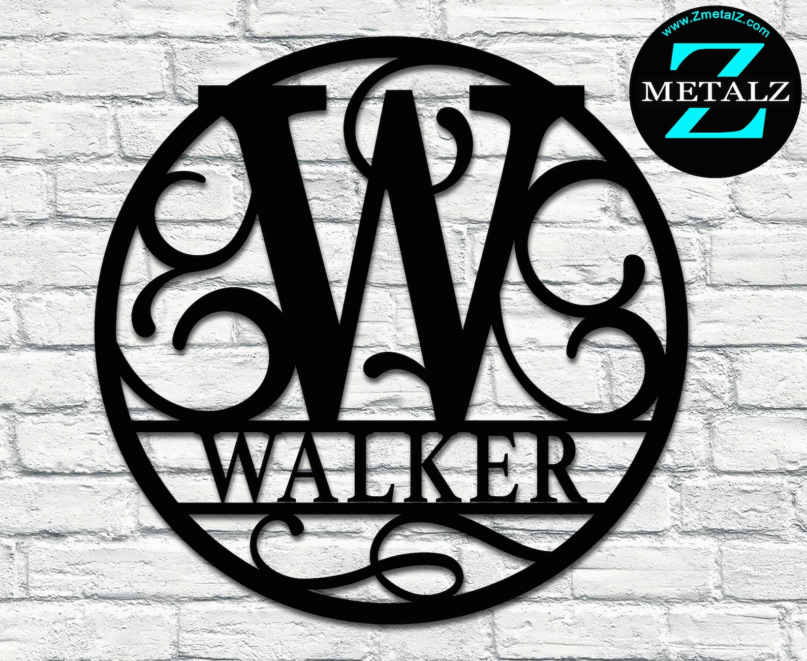 Monogram sign made out of 16 gauge steel then powder coated in the color of your choice.