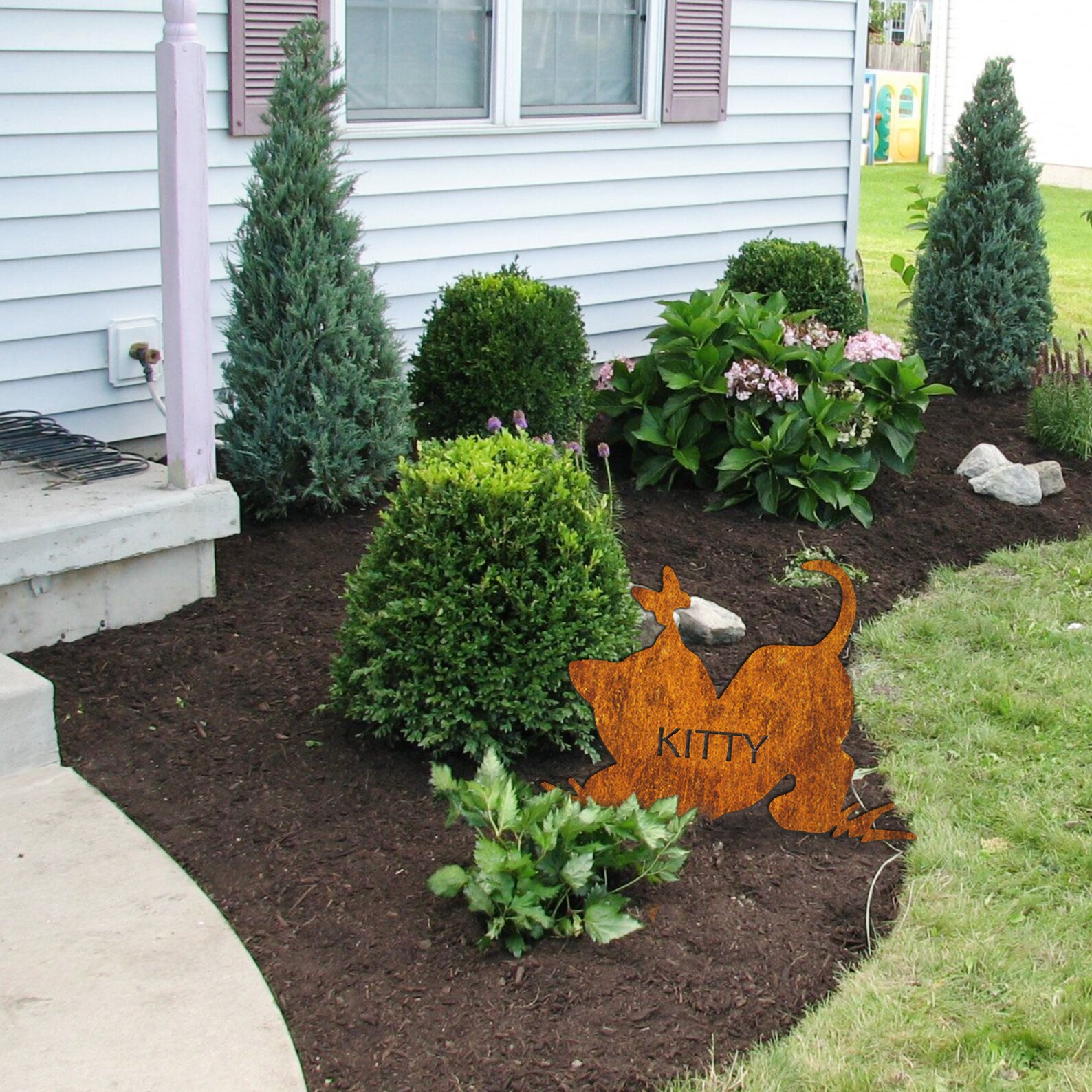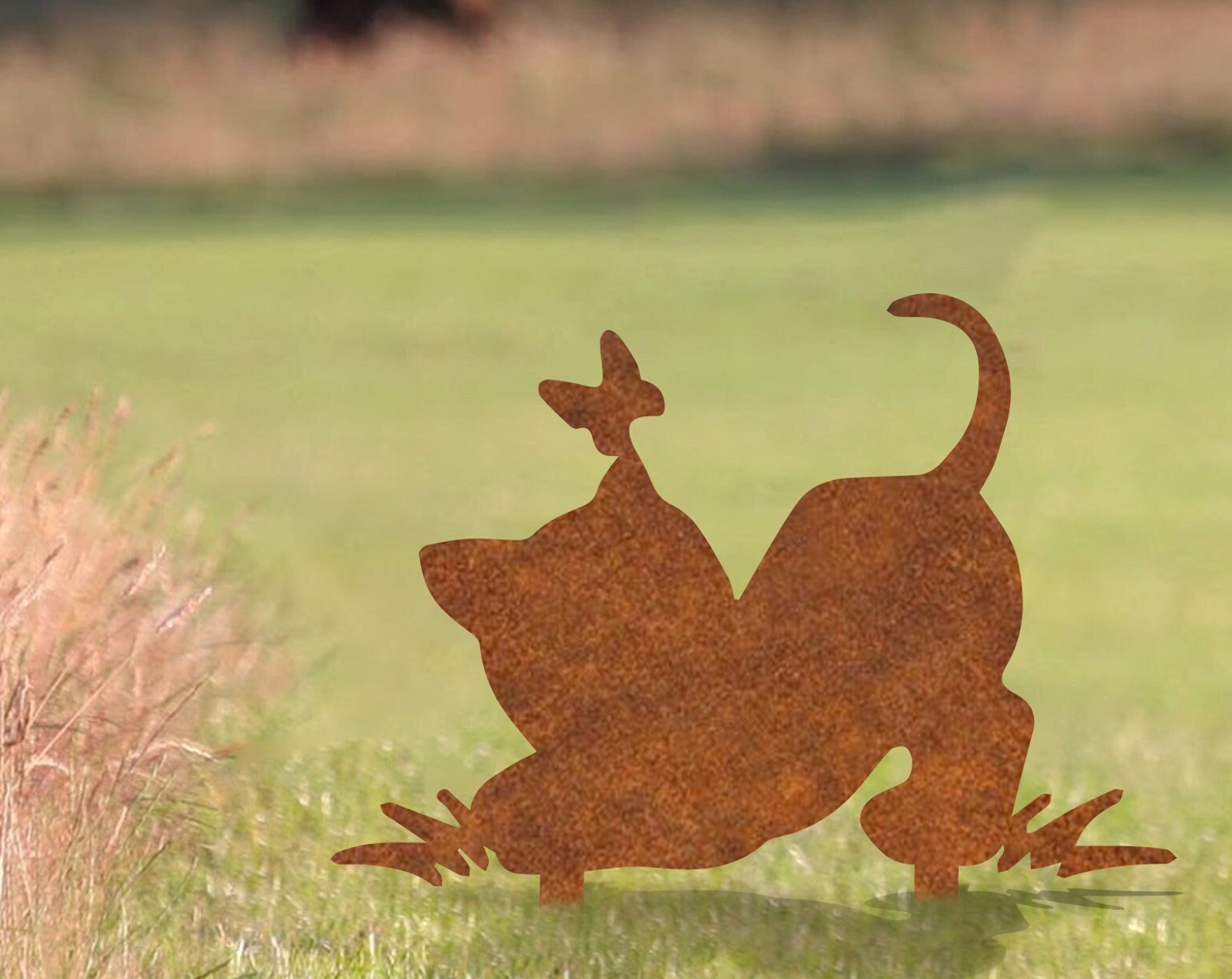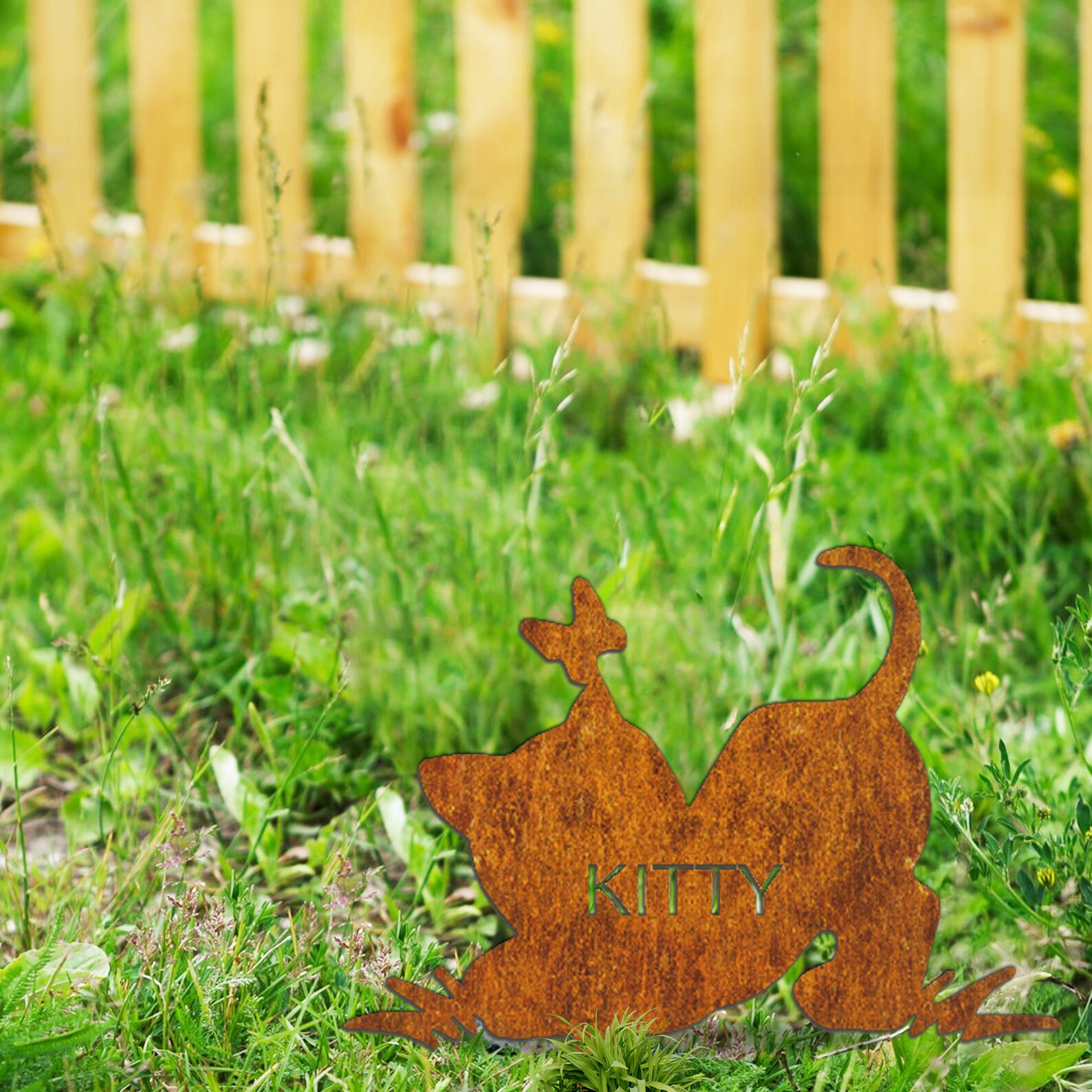 Exterior Rustic Rusty Metal Cat with Butterfly Garden Stake Yard Art / Gate Post / Lawn Sculpture Gift / Rusty Stake Decoration, Garden, Yard Art, Cat Pattern Garden Decoration, Outdoor Garden Decor,