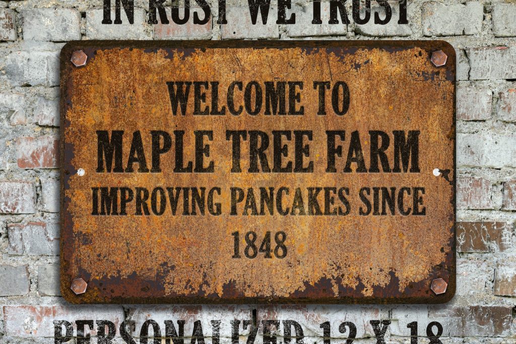 NOTE: These signs are not textured. They are made of metal (not wood or plastic). Any wood grain, knot holes, scratches, rust, or other markings are part of the images used to give the signs their aged appearance. The finish is smooth gloss.