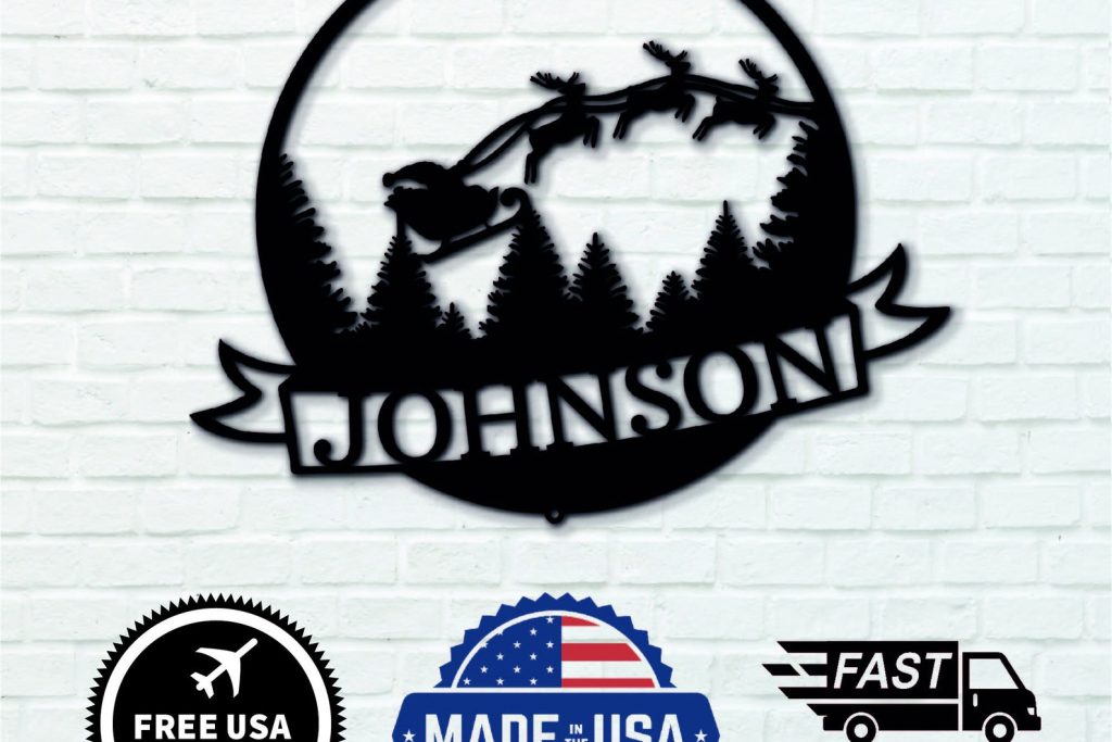 Be the first to review “Santa Sleigh Metal Sign – Christmas Monogram”