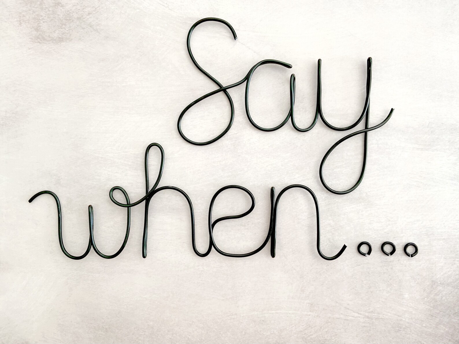 Say when… is a quirky phrase that has a fun and modern vibe for your kitchen or home bar wall. You can arrange the words to fit your style on any wall in your home.