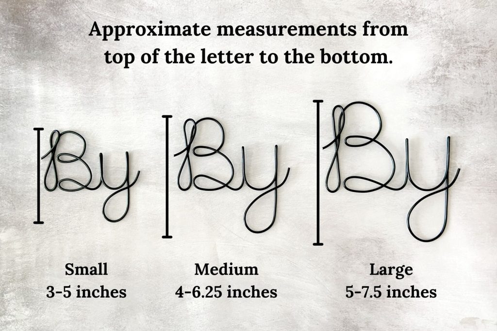 tSize Options from top of letter to the bottom of letter (see photos):