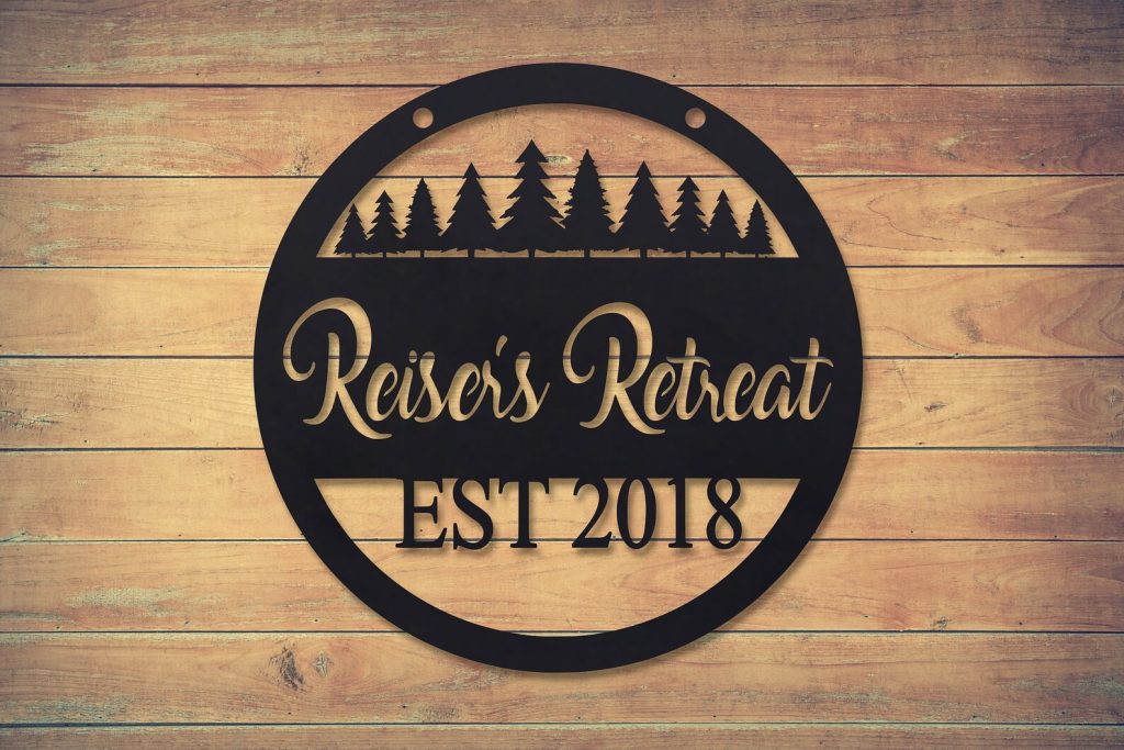 Show your appreciation for the nature that surrounds your family with this Scenic Alpine Round Sign! Personalized this piece with your family name, cabin name or lakehouse name topped with a treeline.