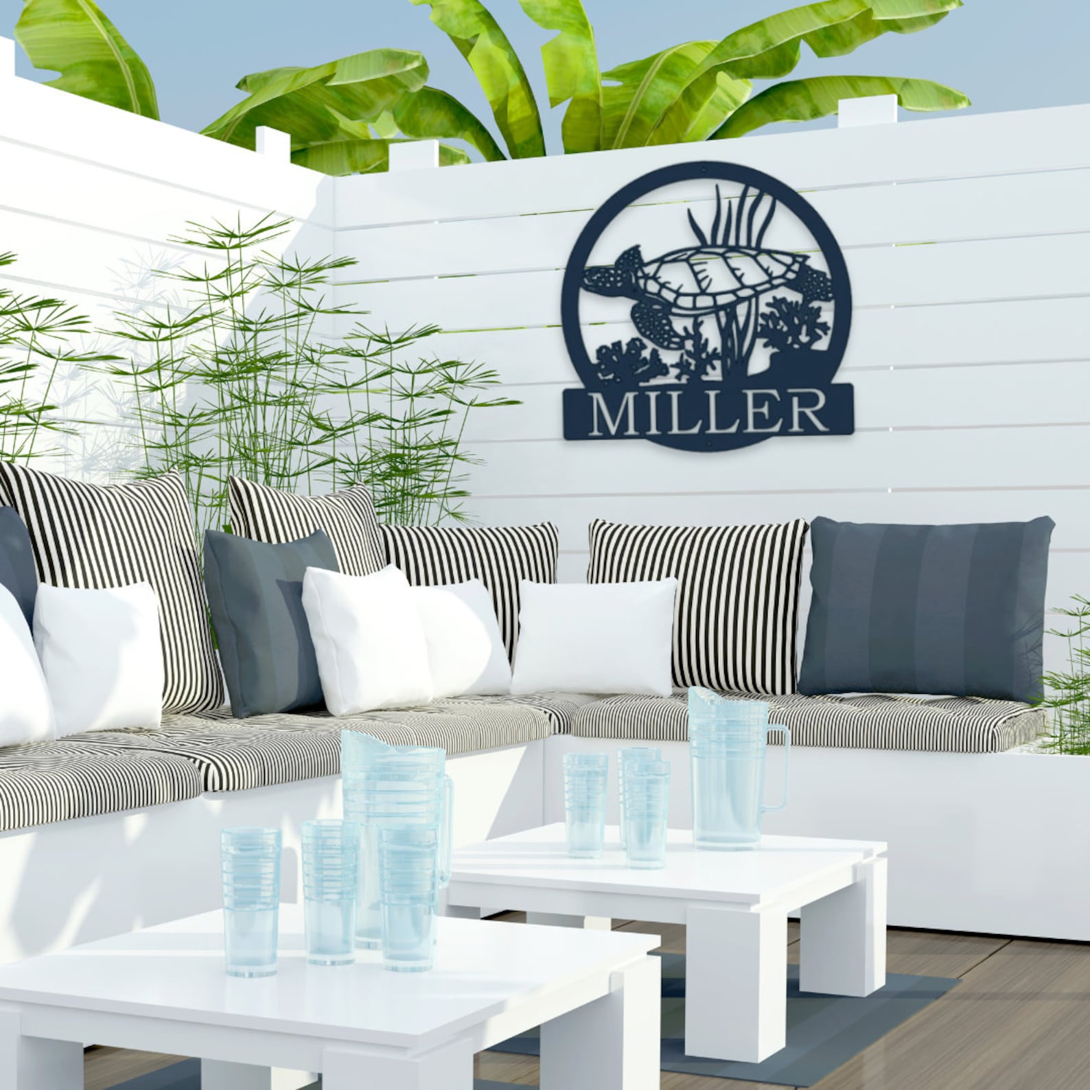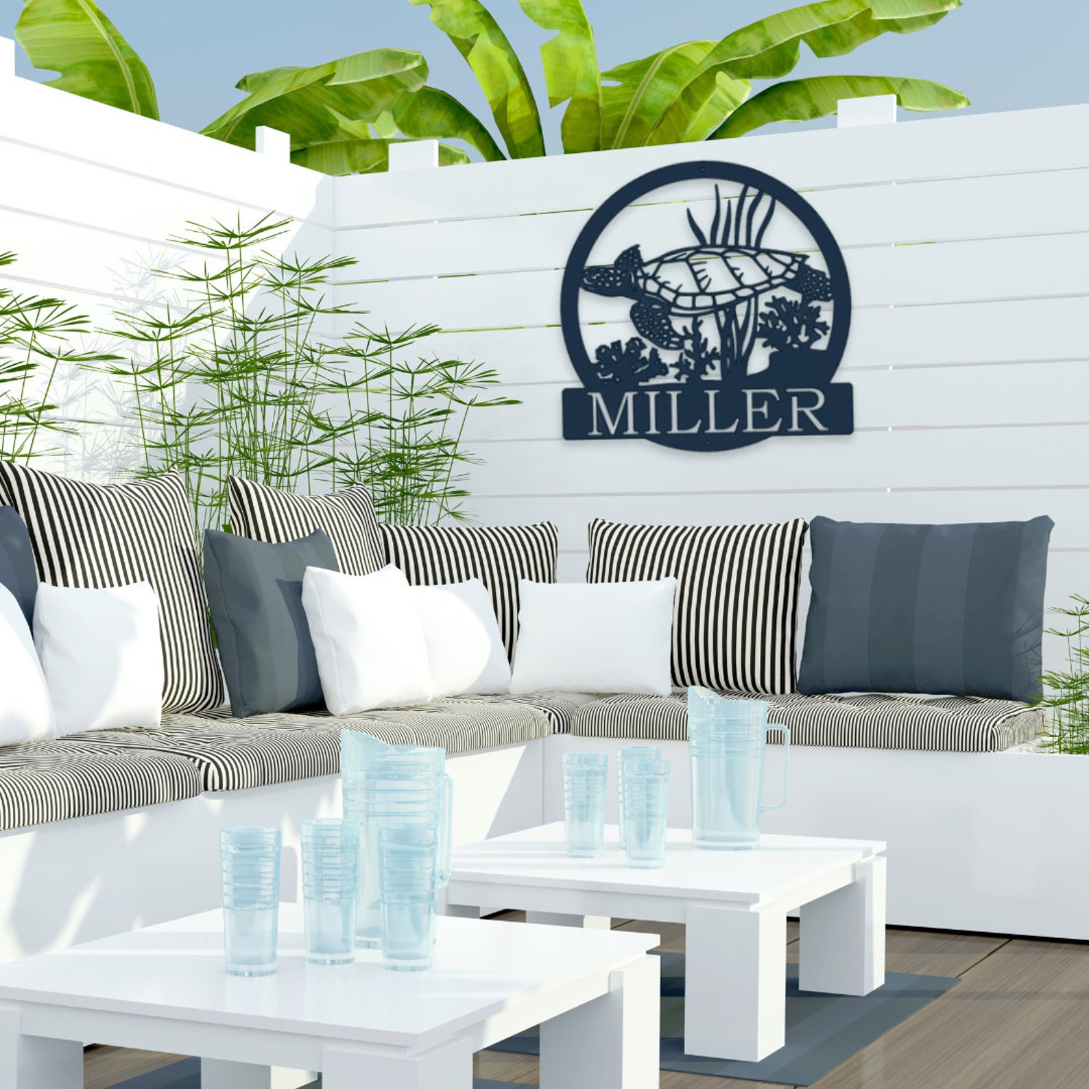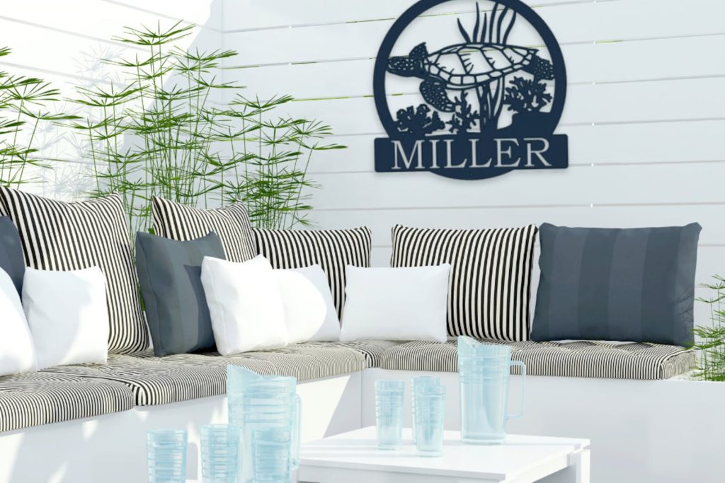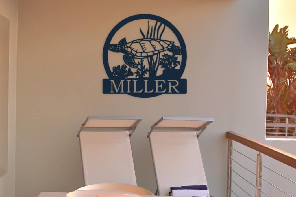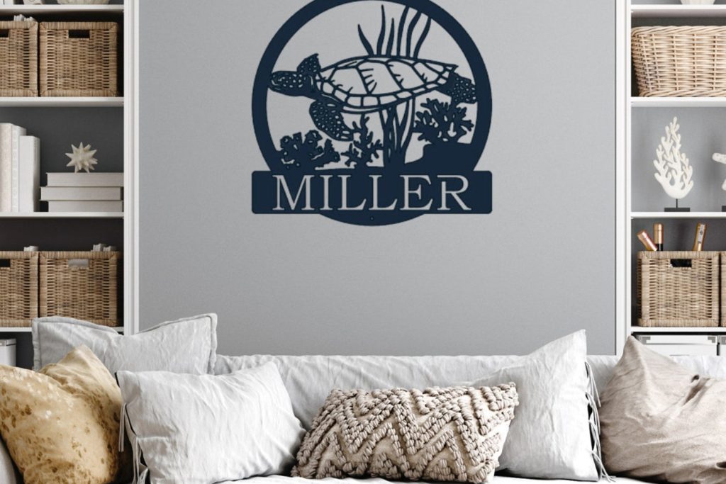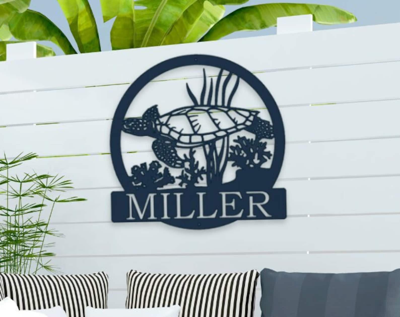 Add a coastal touch to your space with our Metal Personalized Sea Turtle Sign. This beach-inspired masterpiece crafted just for you. This Nautical Wall Art captures the essence of seaside living. Personalize it with your family name to create a unique Last Name Metal Sign. Whether you9;re a beach lover or simply want to bring coastal charm to your space, this Metal Sign is the perfect choice.