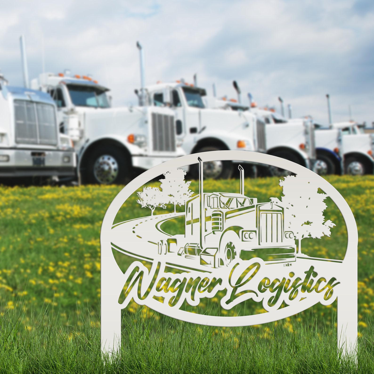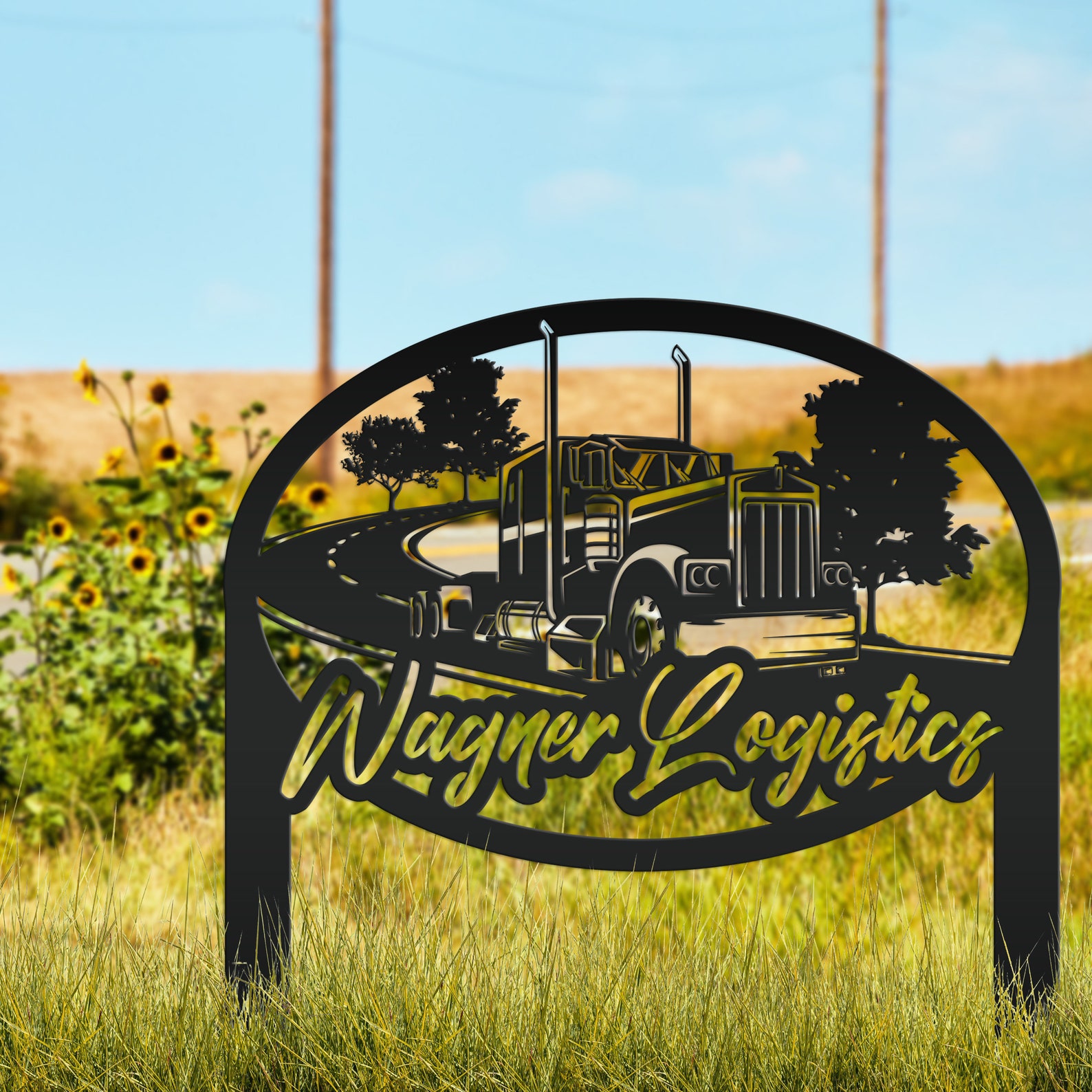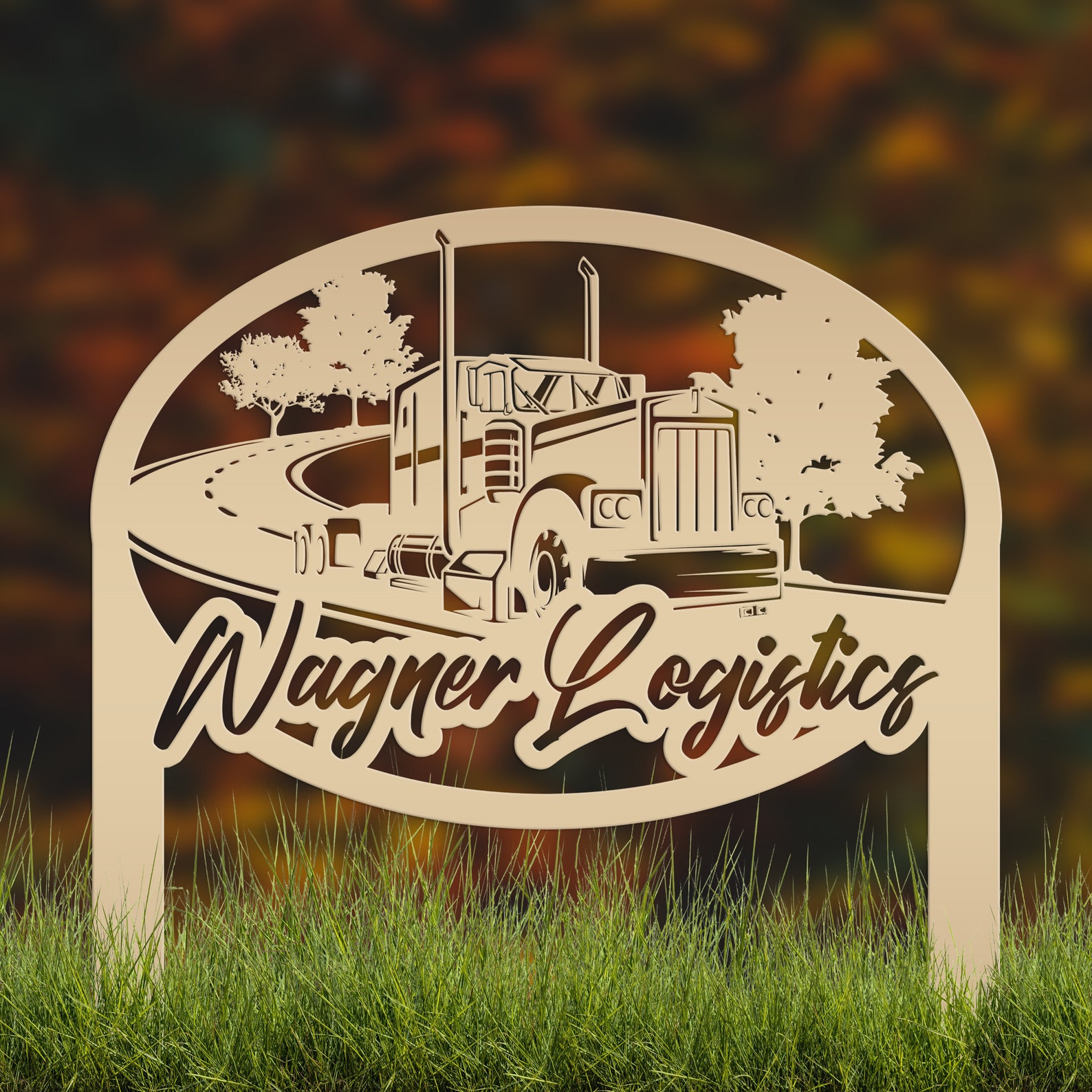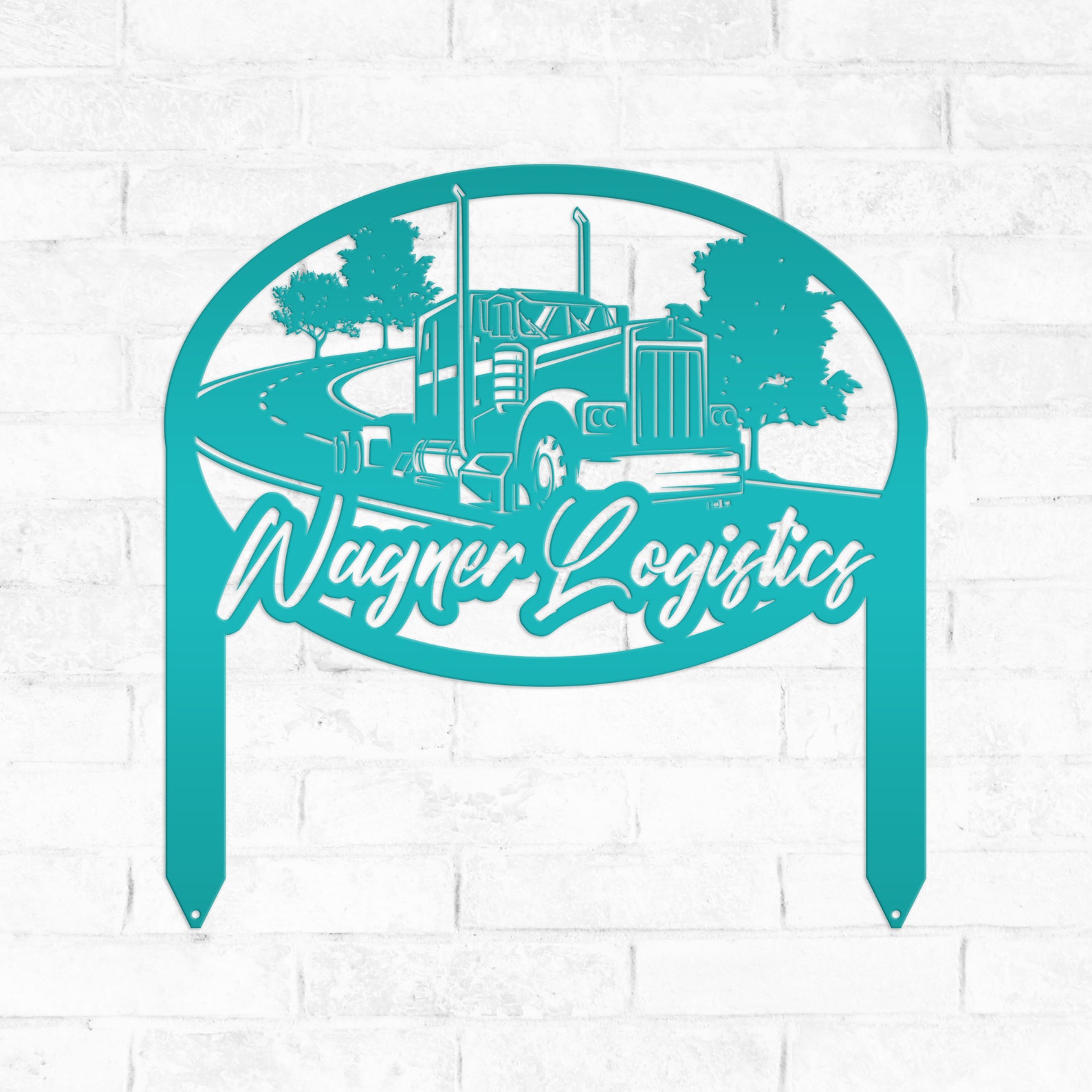 Check out our Diesel Shop Yard Stake, a custom metal semi truck outdoor business sign! This 18 Wheeler Garden Art is the perfect addition to any shop, mechanics garage, or even your garden. Show off your love for big rigs with this unique and eye-catching piece of art that can also be personalized with your shop9;s name or make it your own wording. Crafted with care and attention to detail, this yard stake is sure to impress both truck enthusiasts and passersby. Add a touch