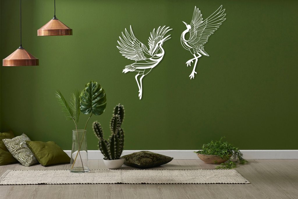 Metal Cranes Wall Art Set of 2, Crane Birds Decor, Unique Living Room Decor, Birds Wall Hanging, Outdoor Wall Decor, Birds Large Wall Art