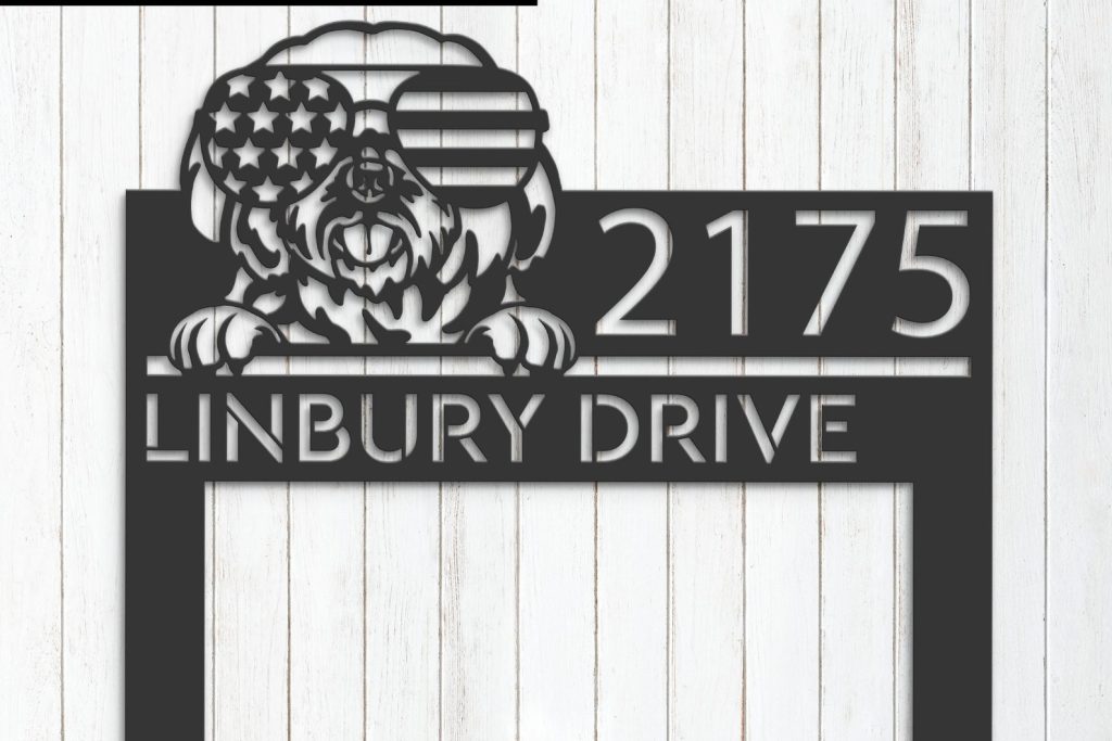 Shih Tzu with US Flag Glasses Metal Address Sign