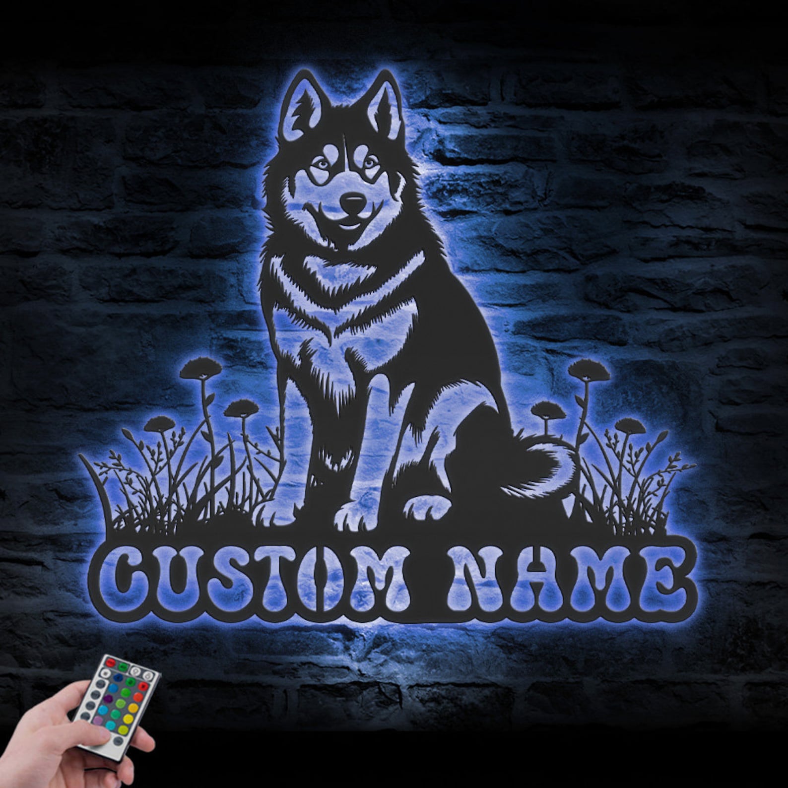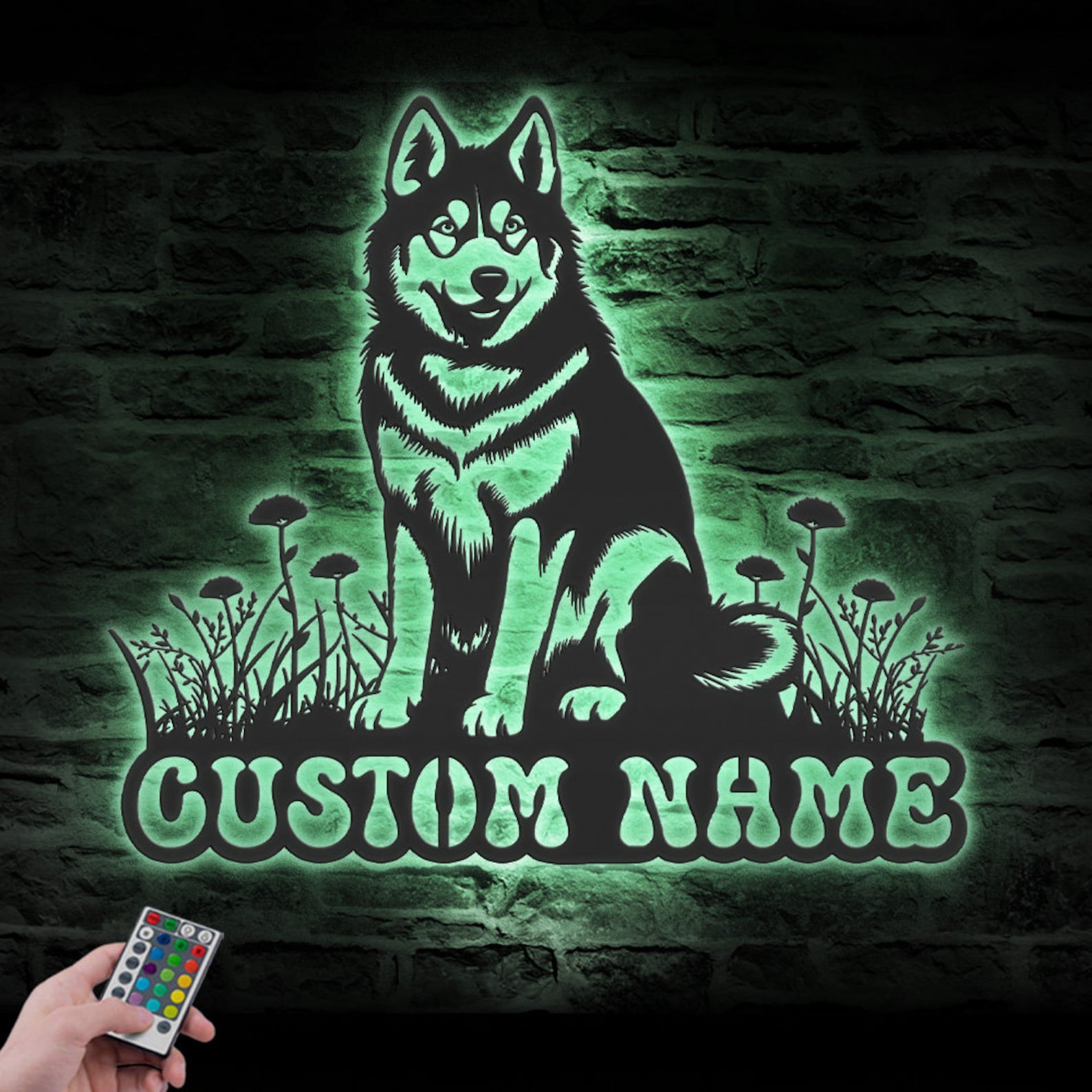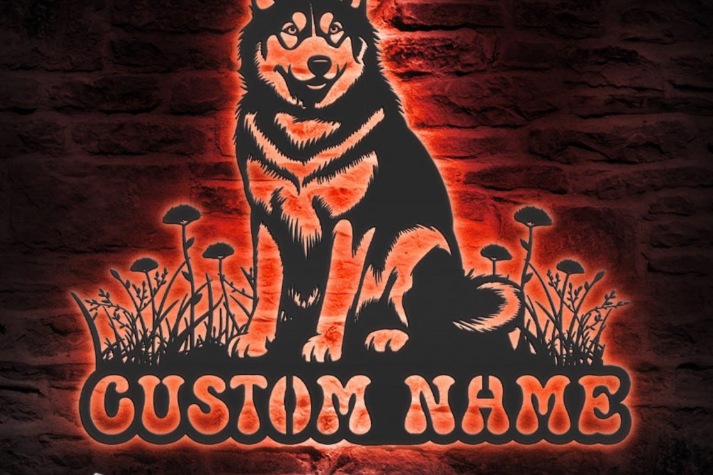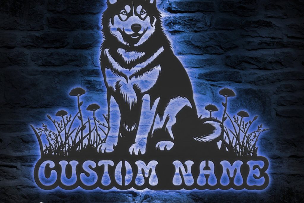 Siberian Husky LED Metal Art – Custom Christmas Dog Sign