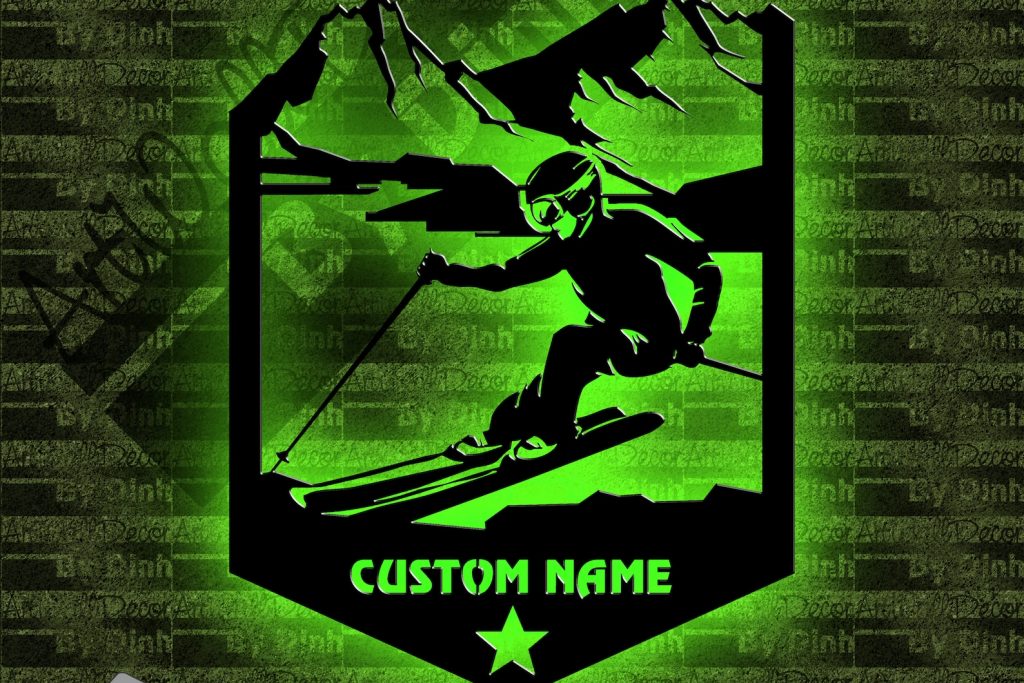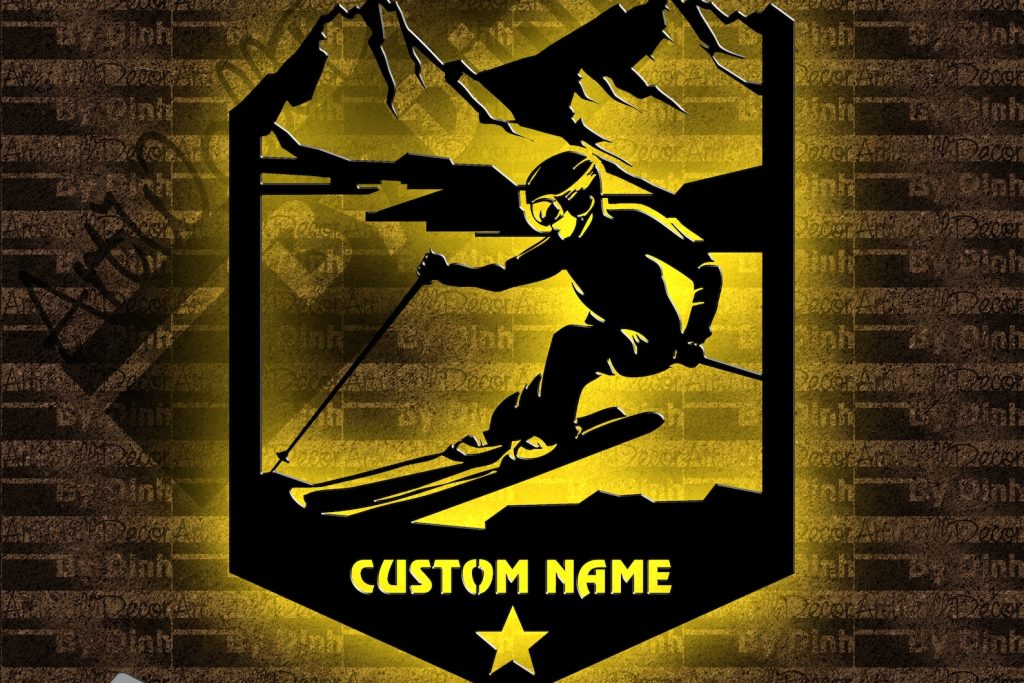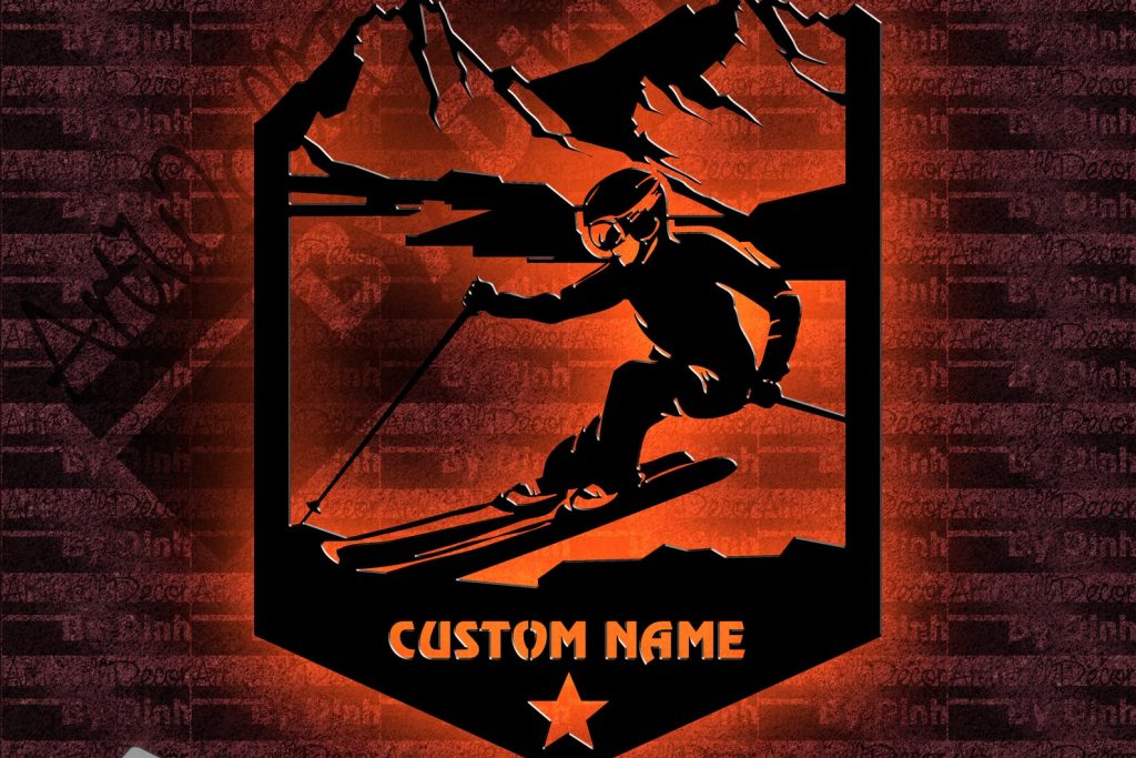 Be the first to review “Skiing Metal Wall Art with LED, Personalized Sign”