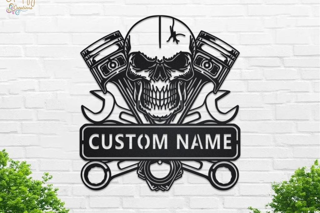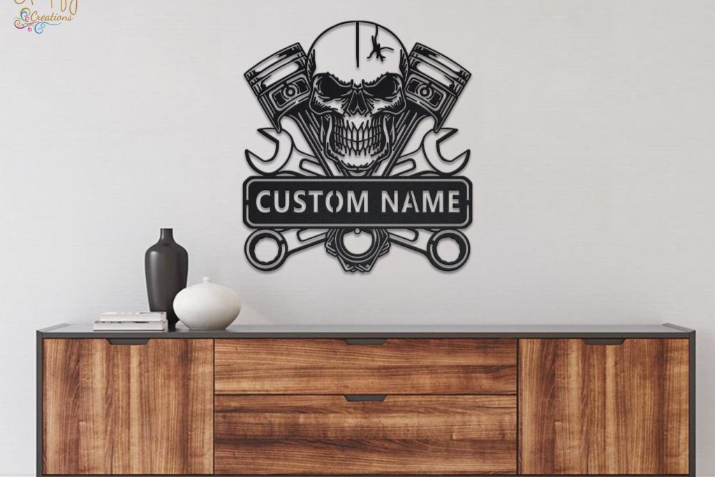 Looking for a unique and eye-catching way to decorate your garage or workshop? Look no further than our Skull Garage Metal Wall Art LED Light Custom Workshop Name Sign!