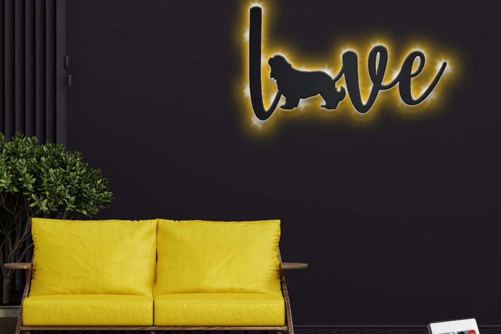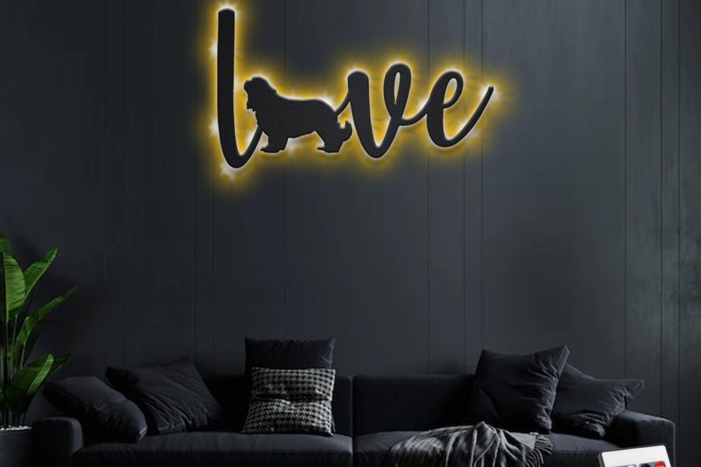 Spaniel Love Metal Sign with LED – Dog Lover Wall Decor