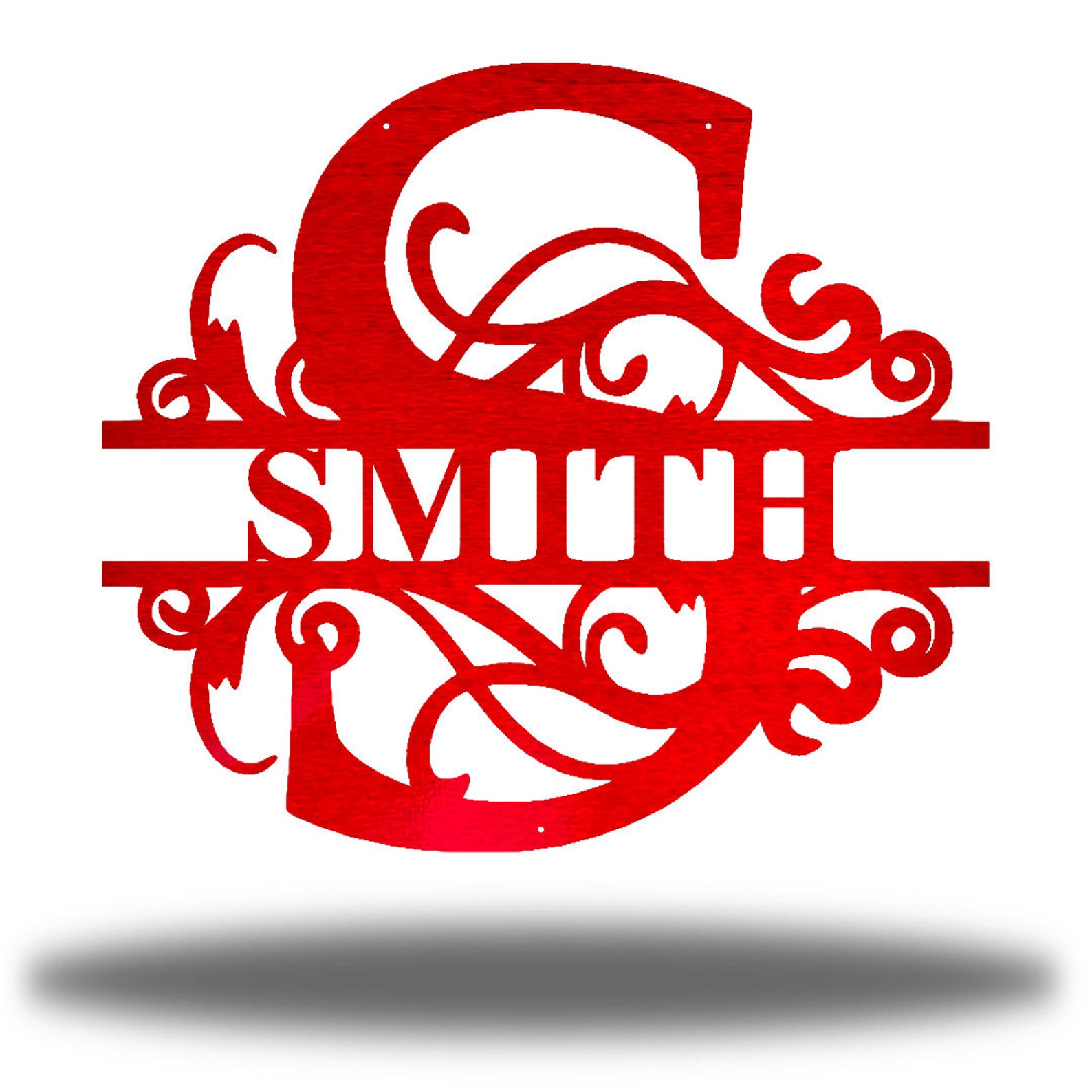 This Beautiful Split Swirl Custom Monogram is constructed of 18 gauge steel on a Fiber Laser and then Powder Coated to give this item a one of a kind, unique finish.