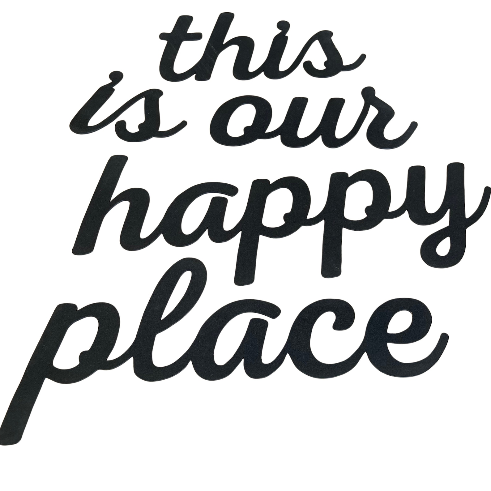 This is our happy place Sign metal , wall decor living room, black lettering , minimalist and modern wall art.