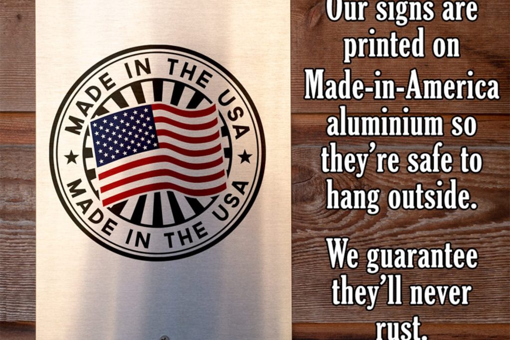 Durable – 8" x 12" or 12" x 18" Aluminum metal sign printed with epoxy ink so you can proudly hang it inside or outside