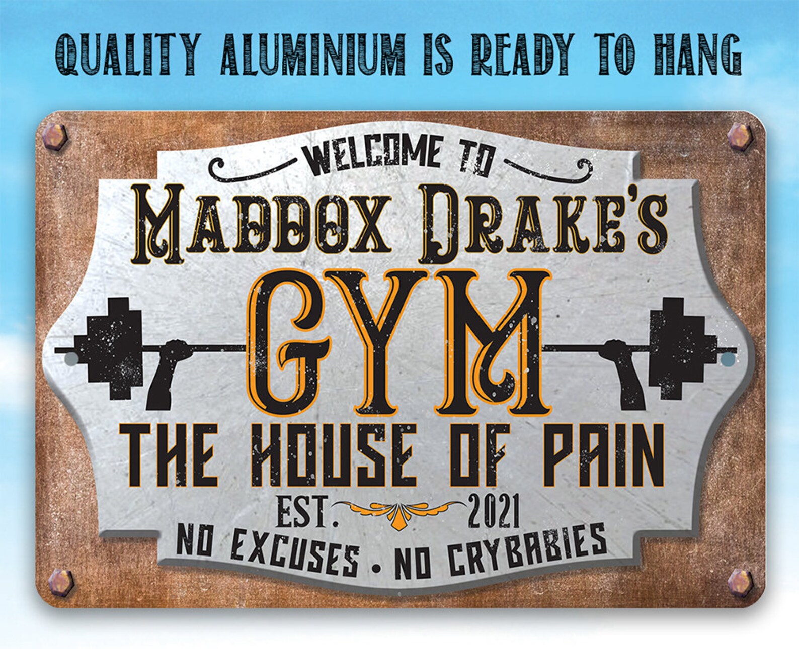 Tin – Personalized Gym House of Pain Metal Sign – 8" x 12" or 12" x 18" Use Indoor/Outdoor – Motivational and Gym Dcor