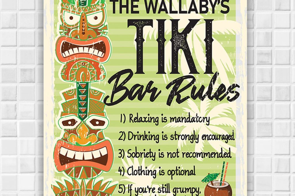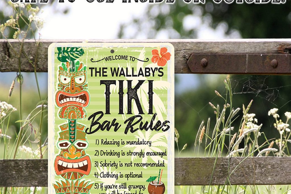 Be the first to review “Tin Personalized Tiki Bar Rules Sign – Indoor/Outdoor Decor”