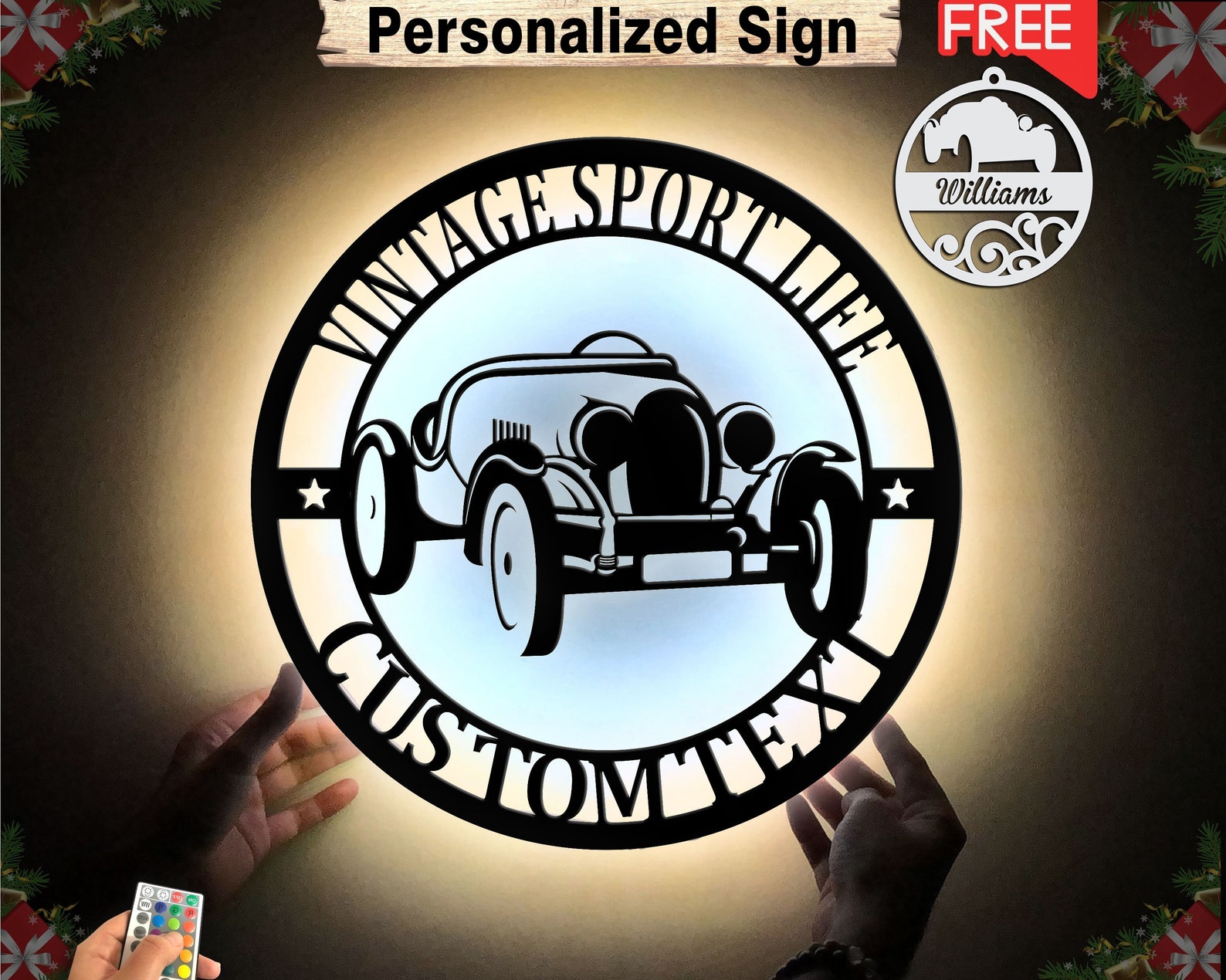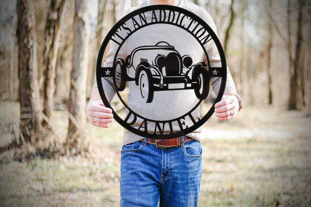 Vintage Car Racing Wall Art – Custom Metal Retro Garage Decor, Personalized Race Car Sign