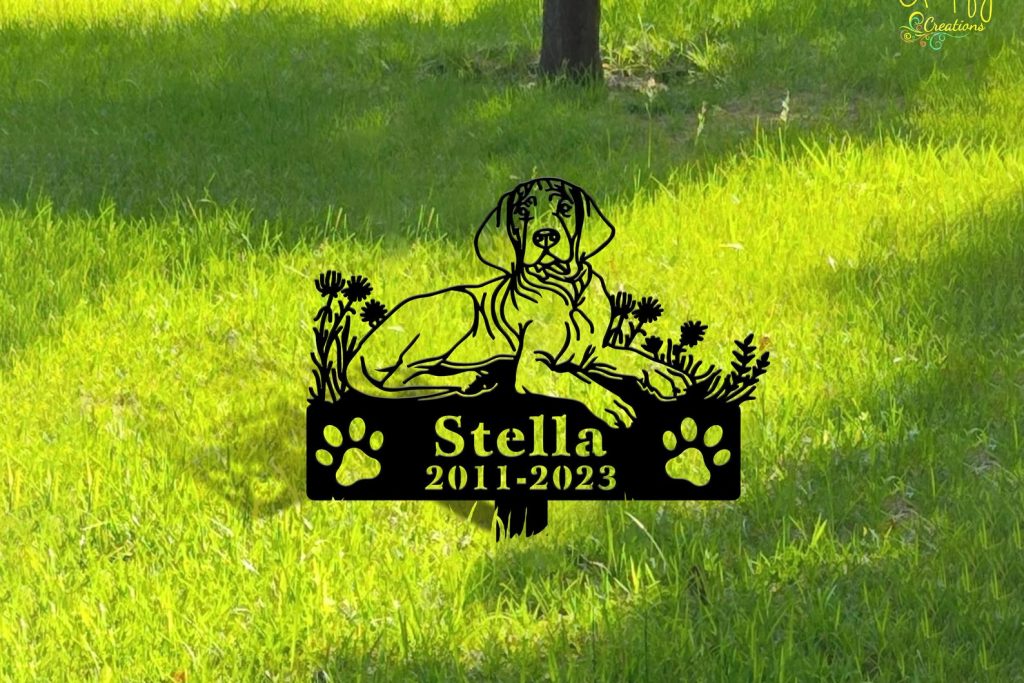 Custom garden items to commemorate your family9;s beloved dog. A memorial plaque is a great way to remember your dog. You can personalize the plaque with your dog9;s name, birthdate, and deathdate.
