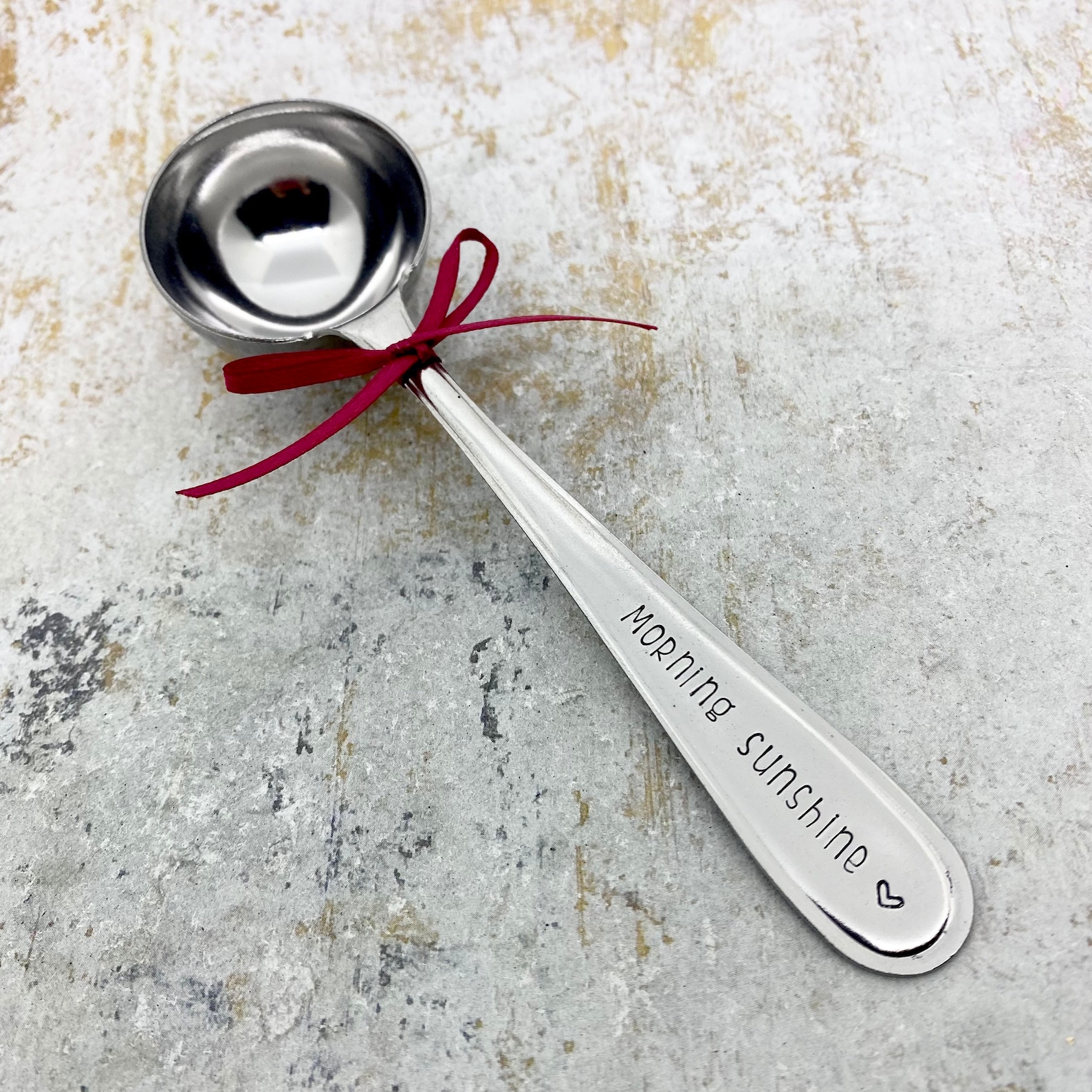 Hand stamped saying on scoops handle