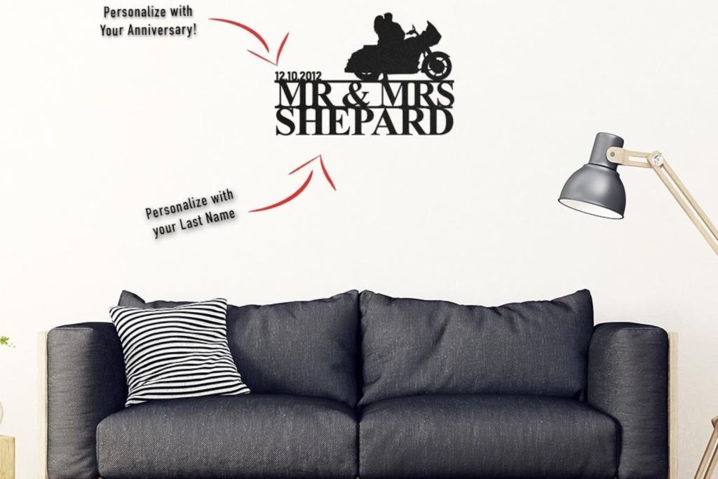 Sweet Ride9;s laser-cut Happily Married Biker Couple Personalized Wall Art brings together your most significantly meaningful bond into a design that truly speaks from the heart, bringing incredible meaning to any wall it adorns.