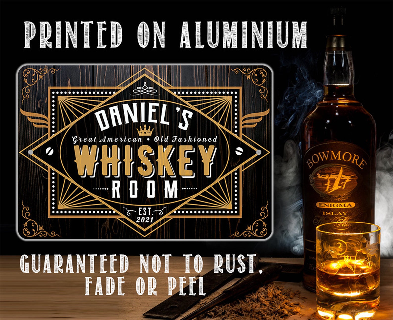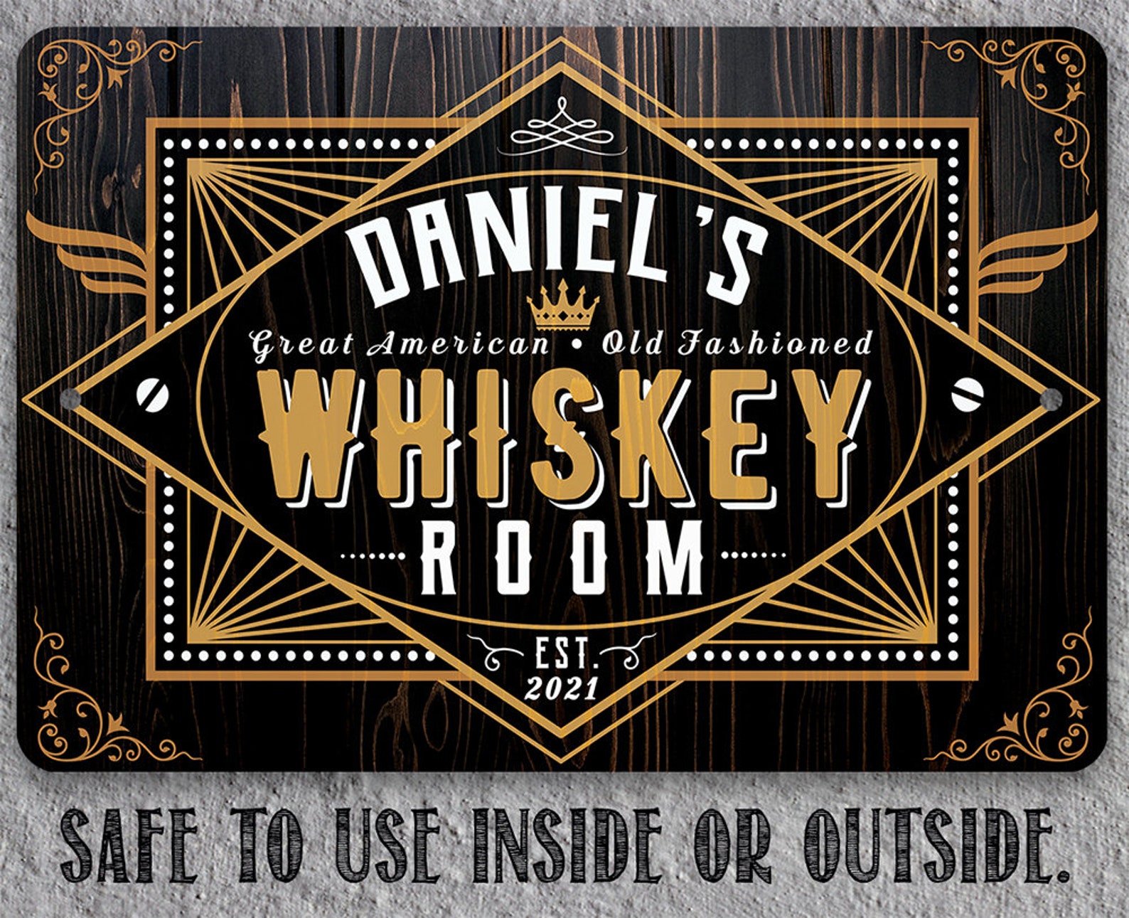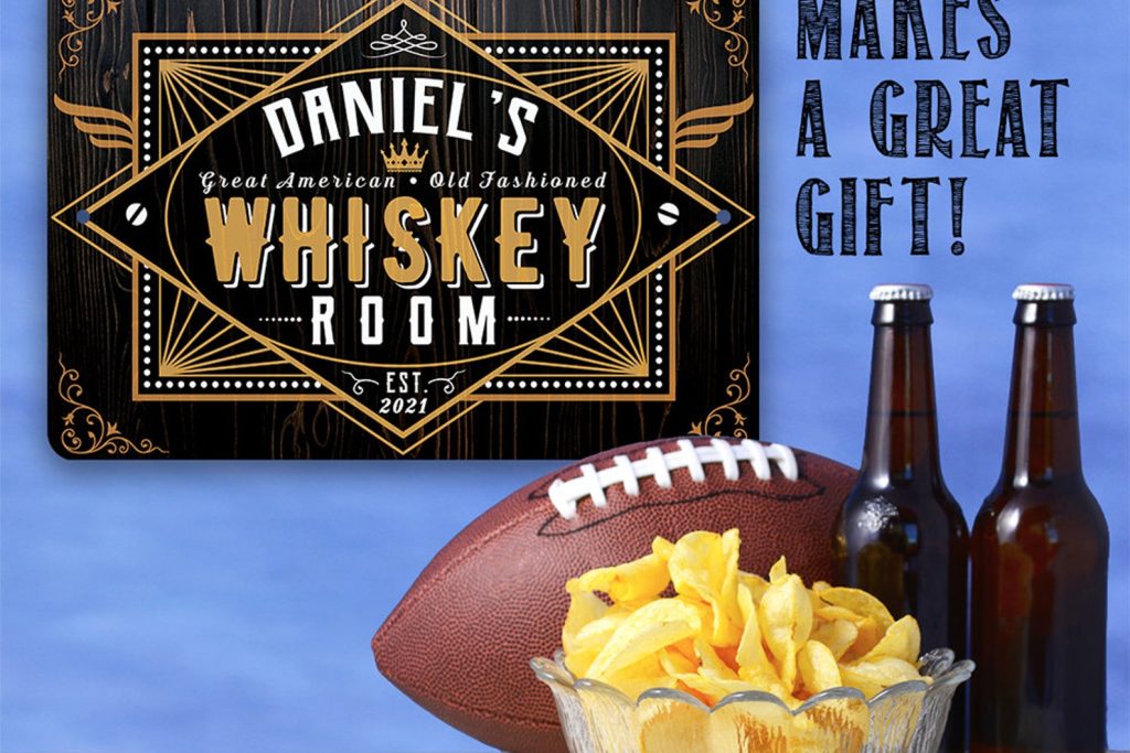 Tin – Personalized Whiskey Room Metal Sign – 8" x 12" or 12" x 18" Use Indoor/Outdoor – Bar, Pub, and Mancave Decor