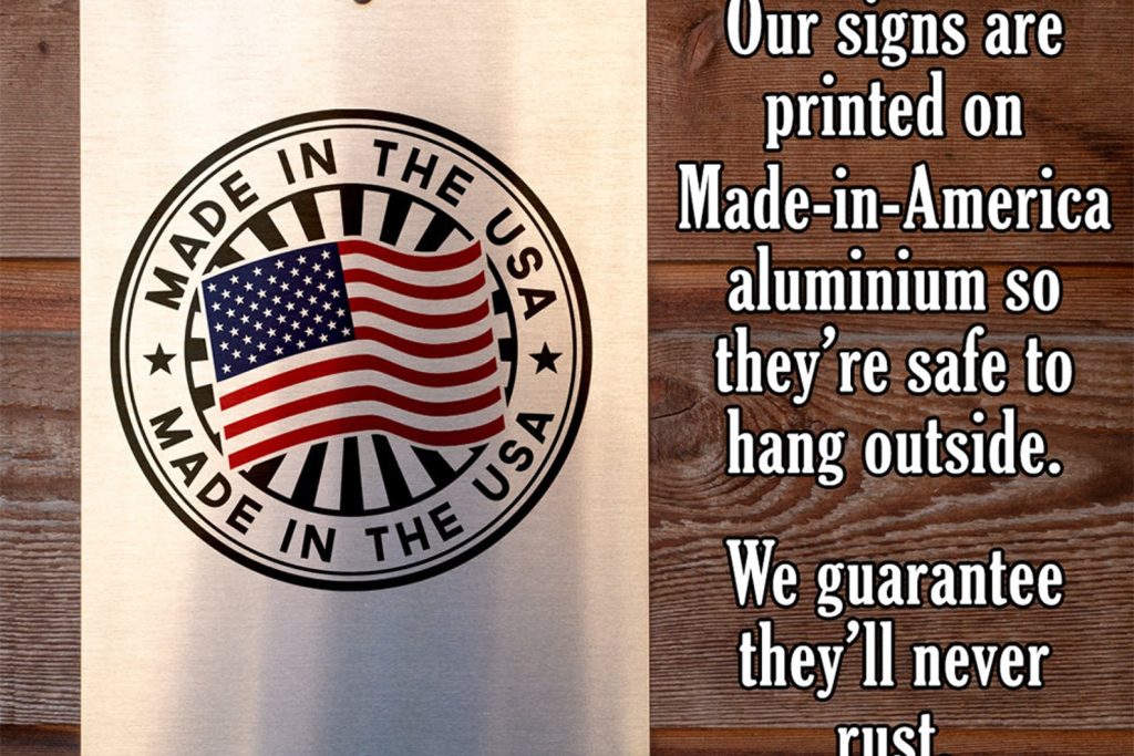 Durable – 8" x 12" or 12" x 18" Aluminum metal sign printed with epoxy ink so you can proudly hang it inside or outside