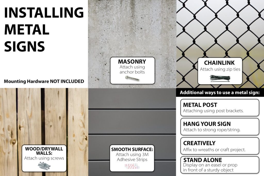 tOur metal signs are light-weight and will not cause major damage when hanging.