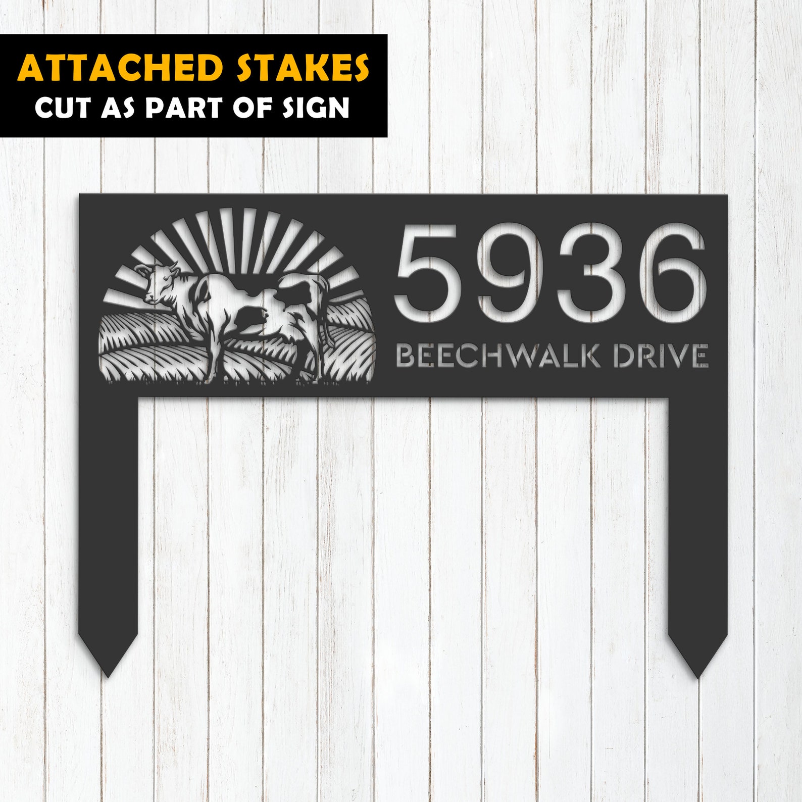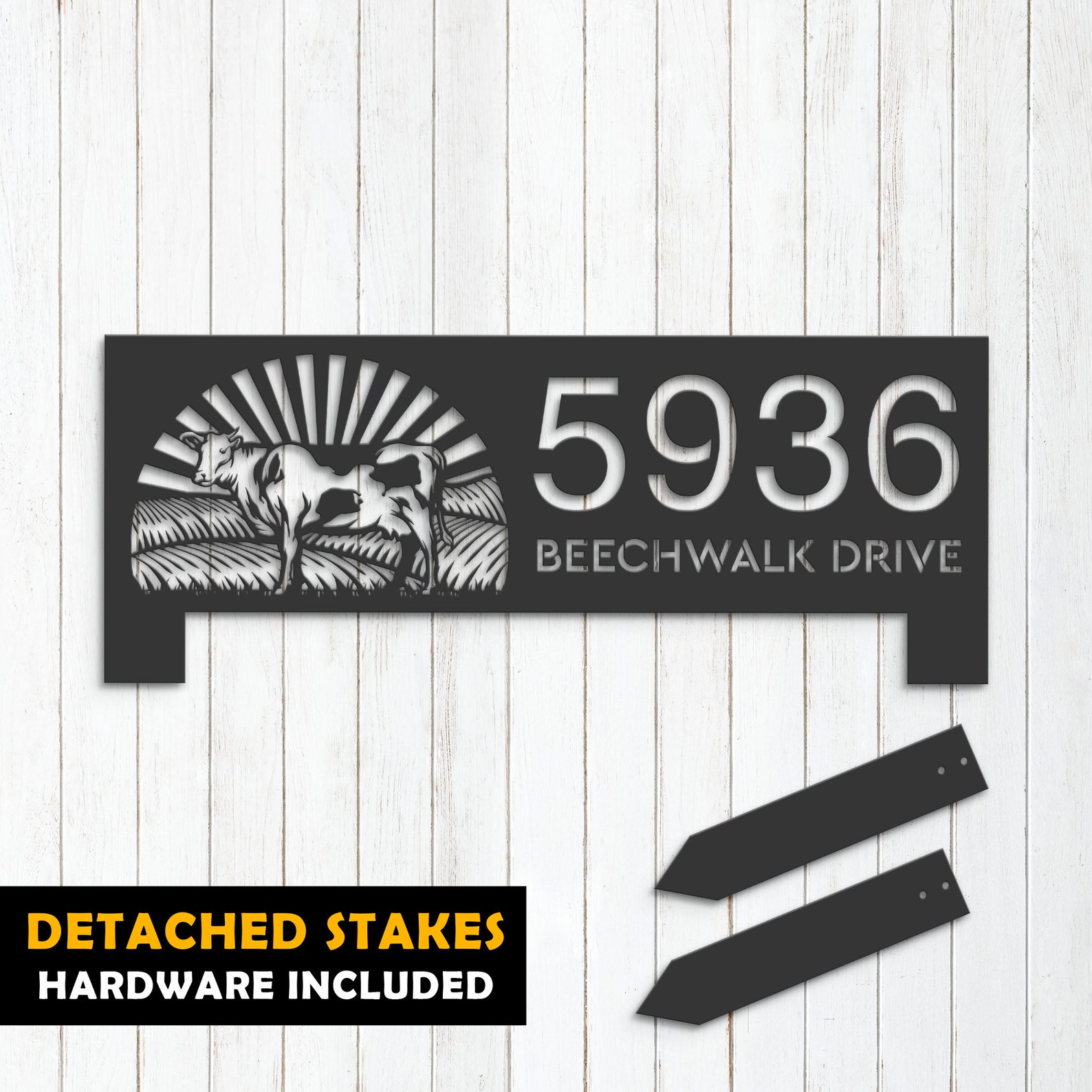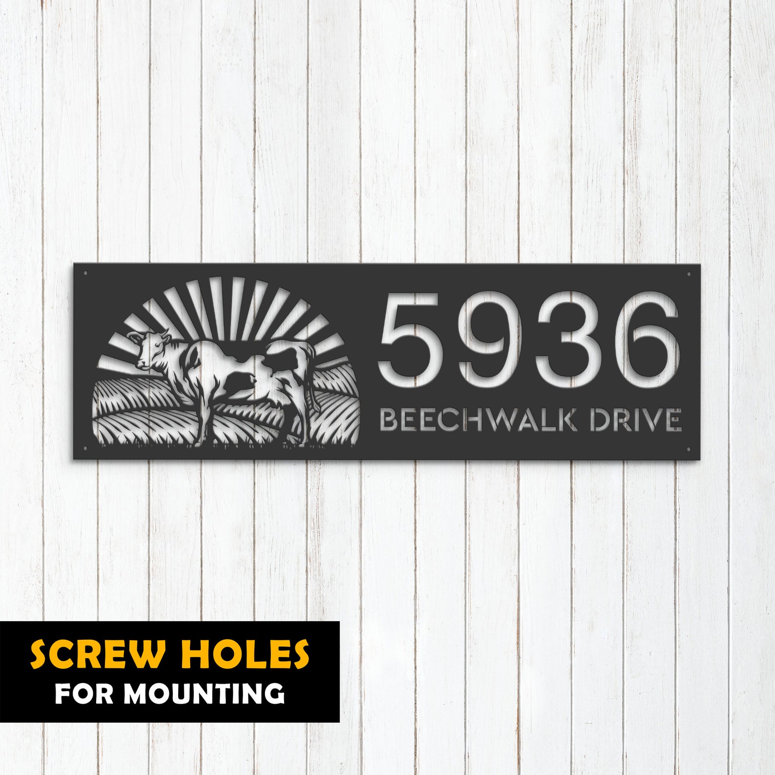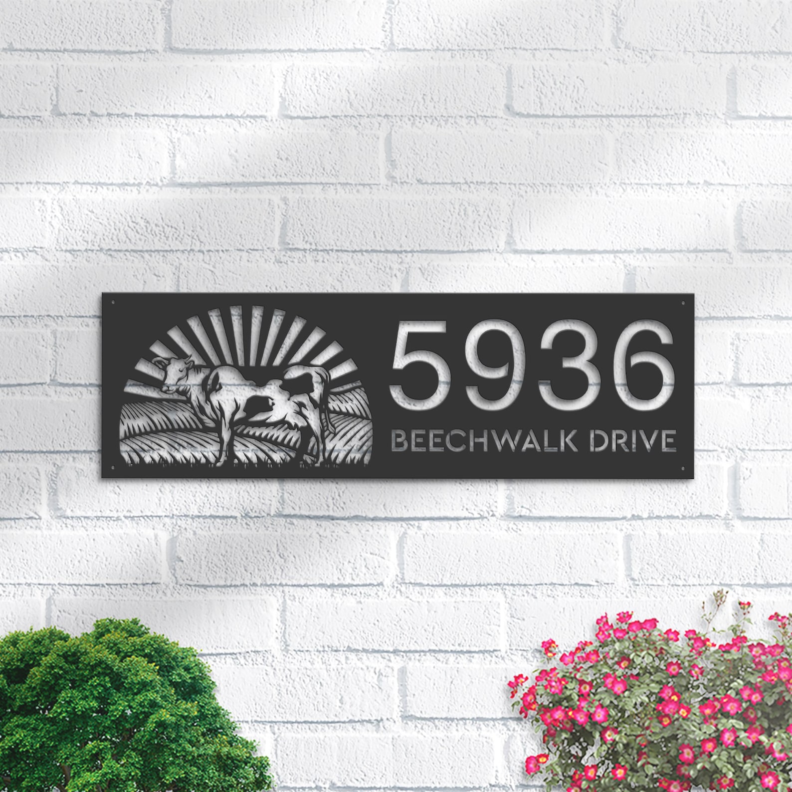 Introducing our custom metal address sign, available in 5 size options and 4 different styles to suit your individual needs. With our address sign, you can make a statement while also ensuring that visitors can easily locate your home or business.