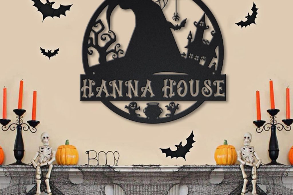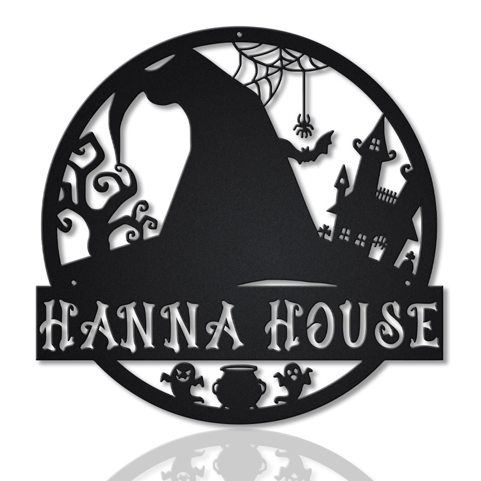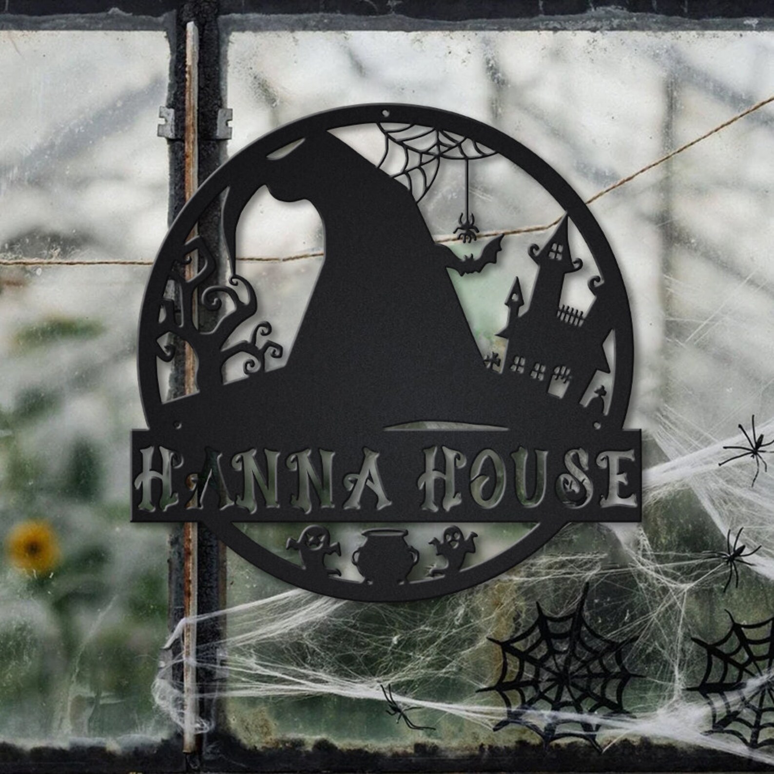 Be the first to review “Witch Hat Halloween Metal Sign – Haunted Welcome Decor”
