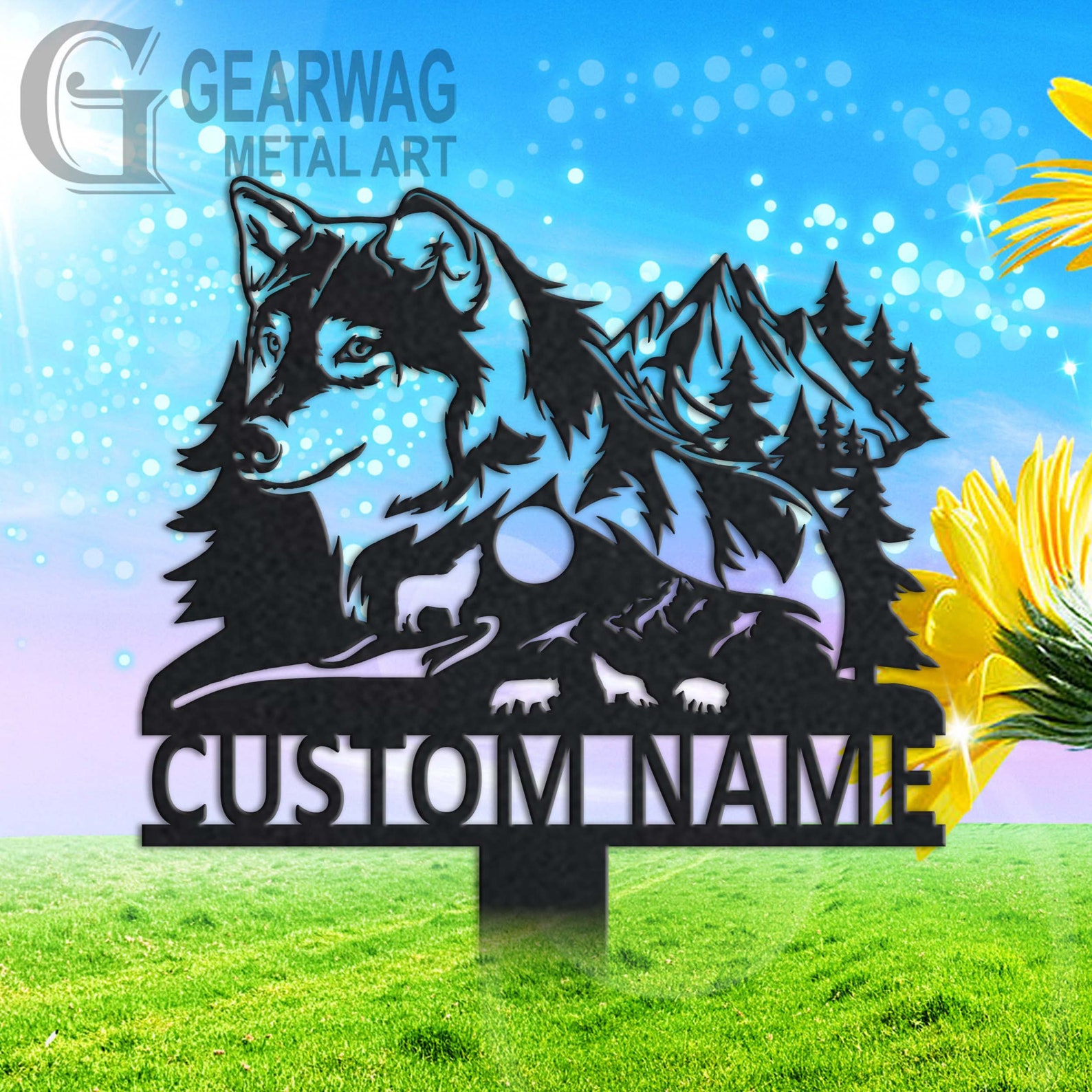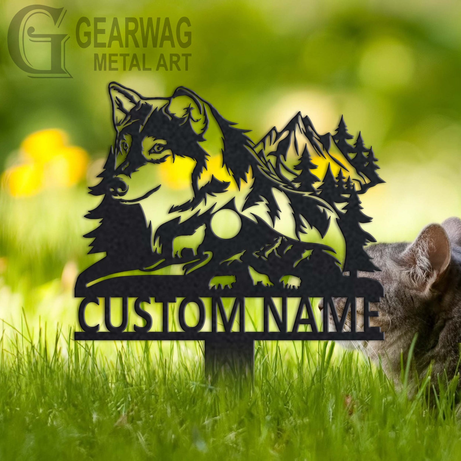 Wolf Garden Sign – Custom Metal Stake Decor