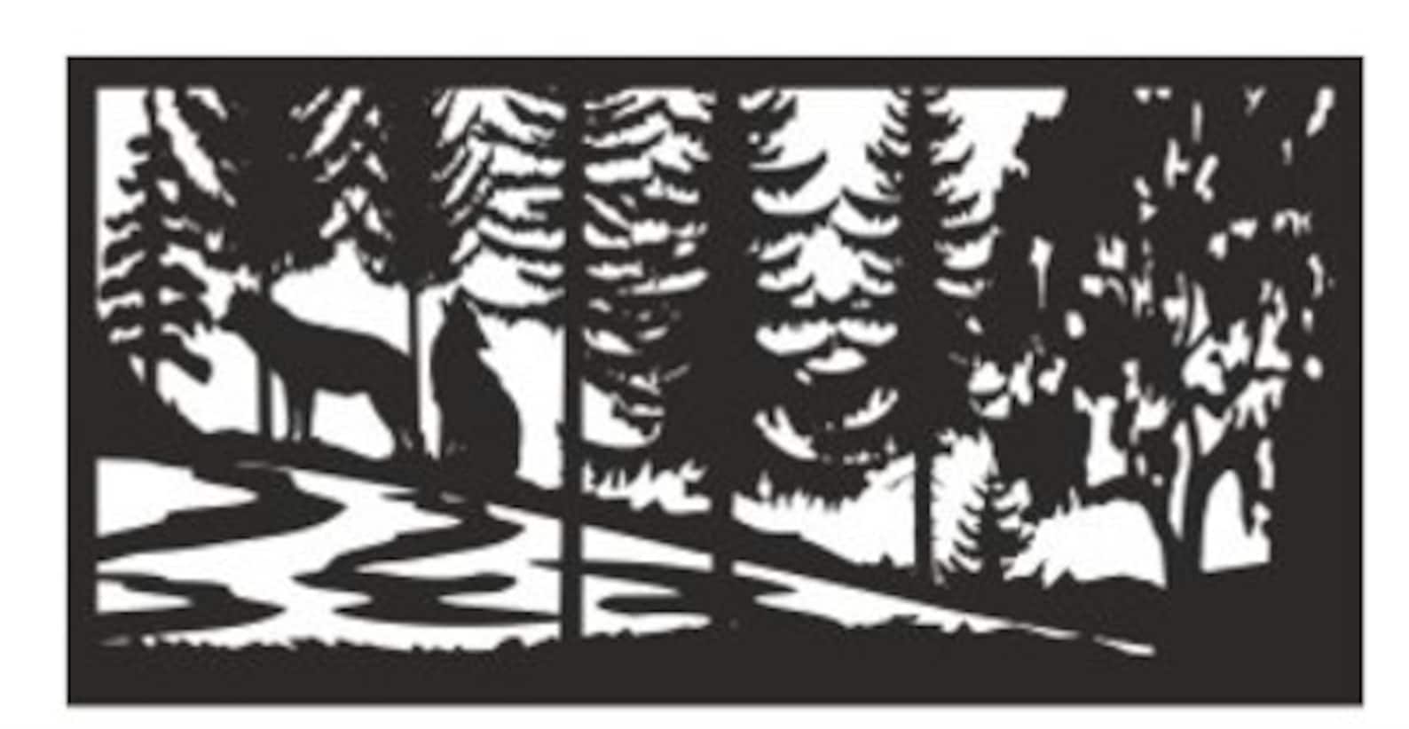Decorative Rustic Metal Panel. Wildlife scenery with Wolf.