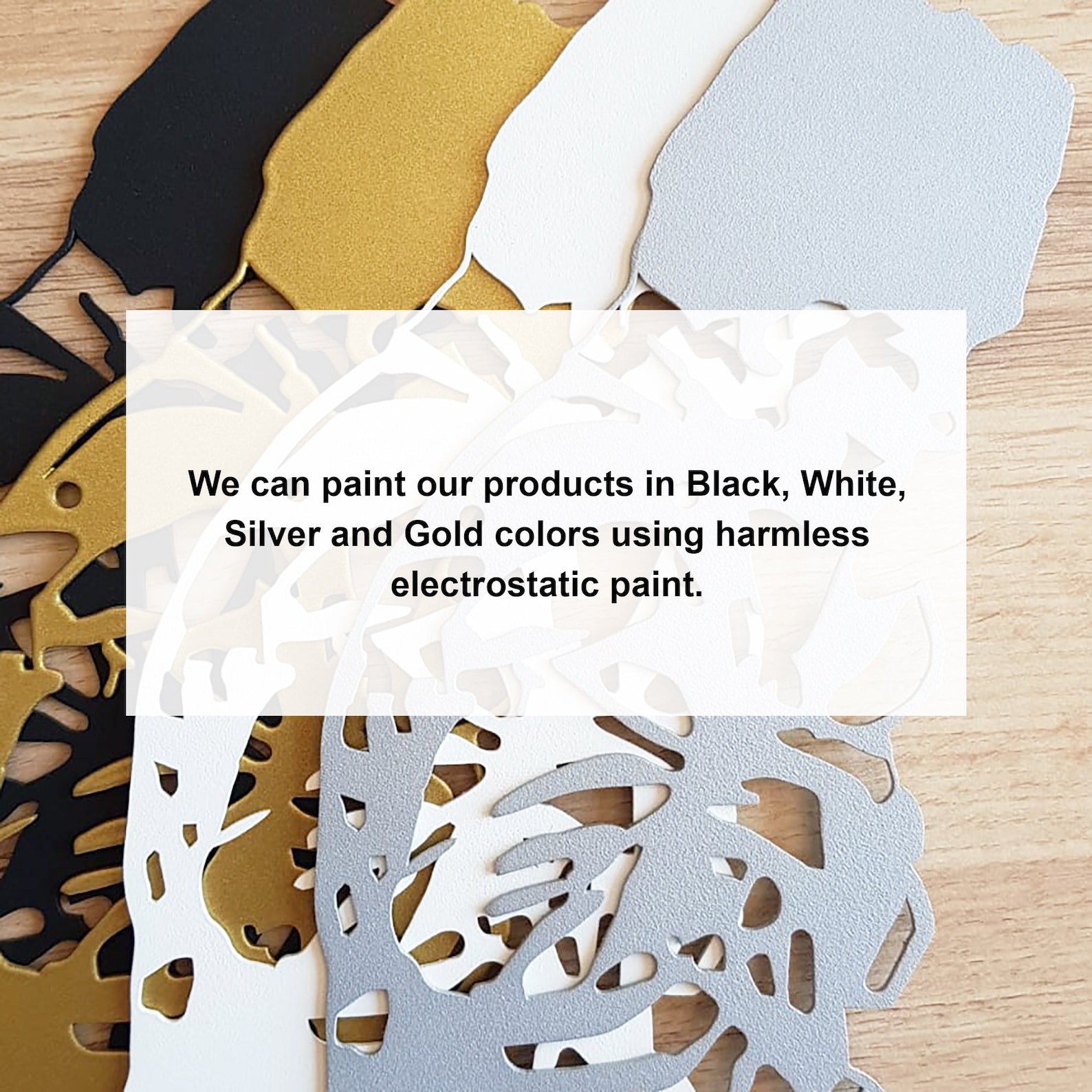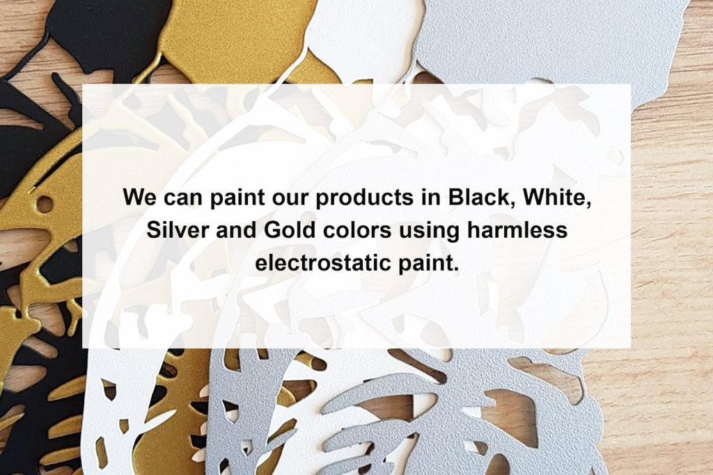 We manufacture our product from 1.5 mm high quality steel and using harmless electrostatic paint. We produce our products in black, white, gold and silver colors. . If you need a different size or colour, please feel free to contact us.