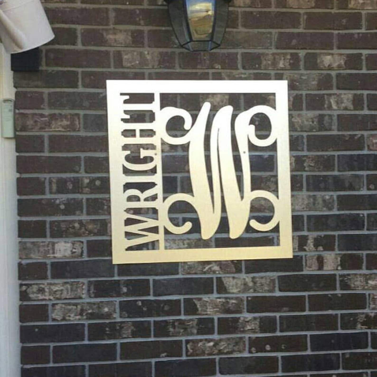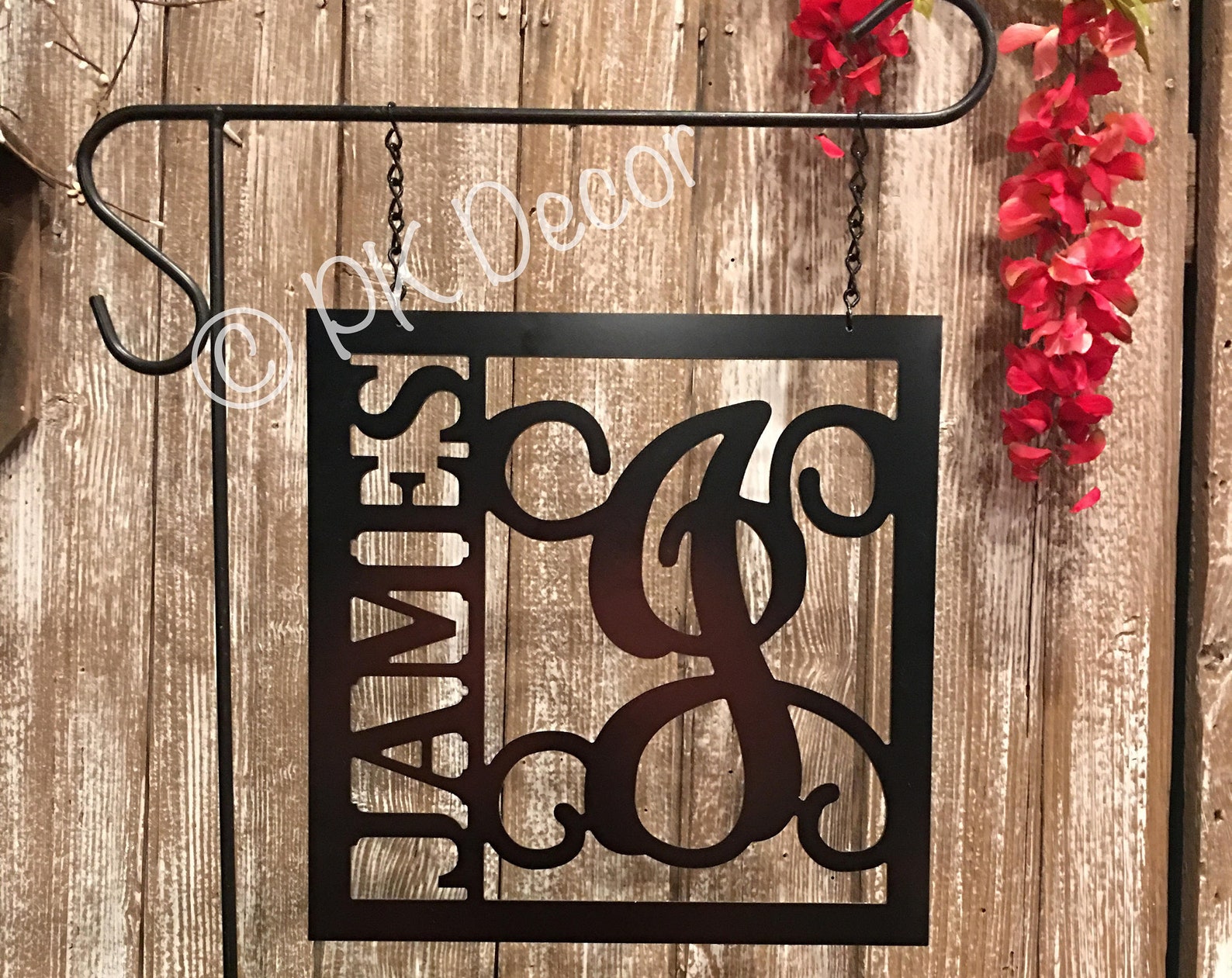 Dress your front yard up with your family name with this Monogram Metal ACM Name Garden Flag. Designed to be an elegant piece of yard decor, this front yard sign proudly boasts your family name and initial while looking elegant and classy! This custom name sign will not only withstand the test of time but also the elements with its aluminum composite material body. Create yours as a wreath accessory for your front door.