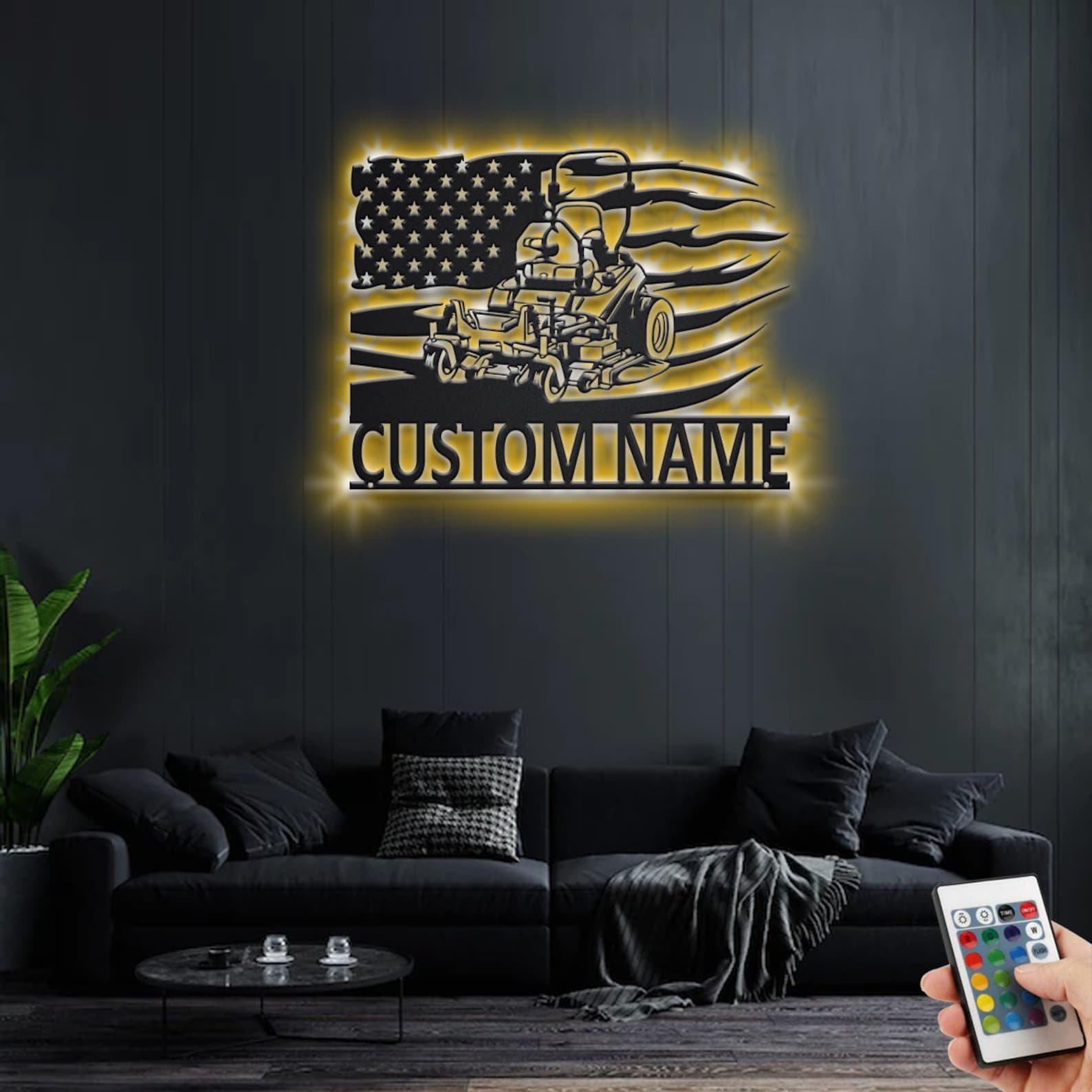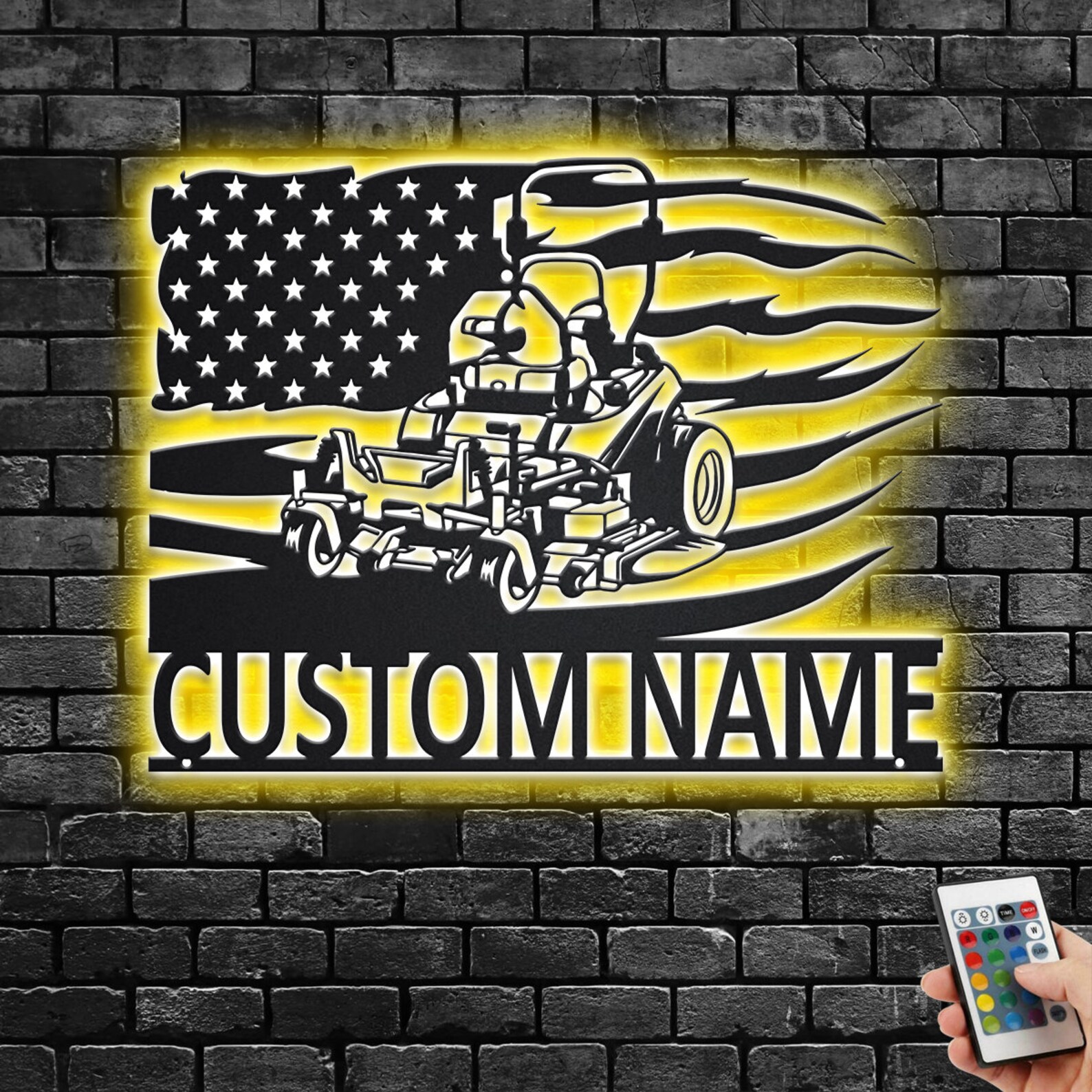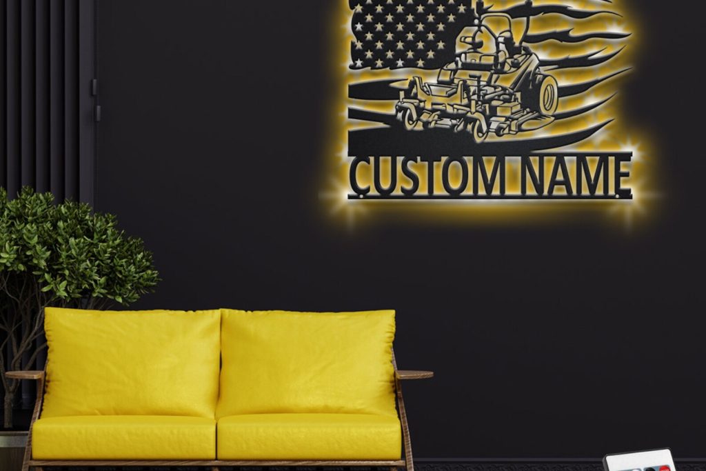 Zero Turn Lawn Mower Art – LED Personal Metal Gardener Sign